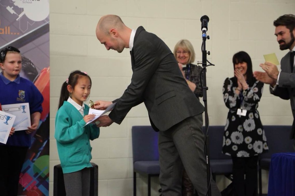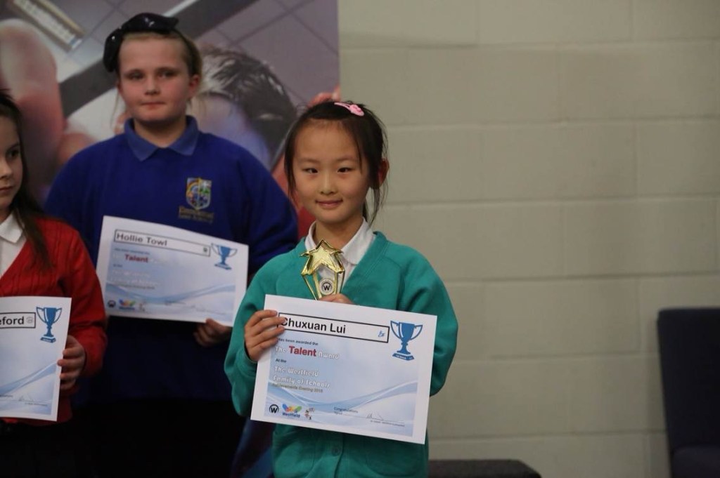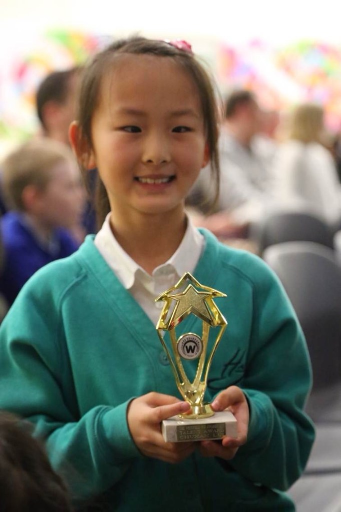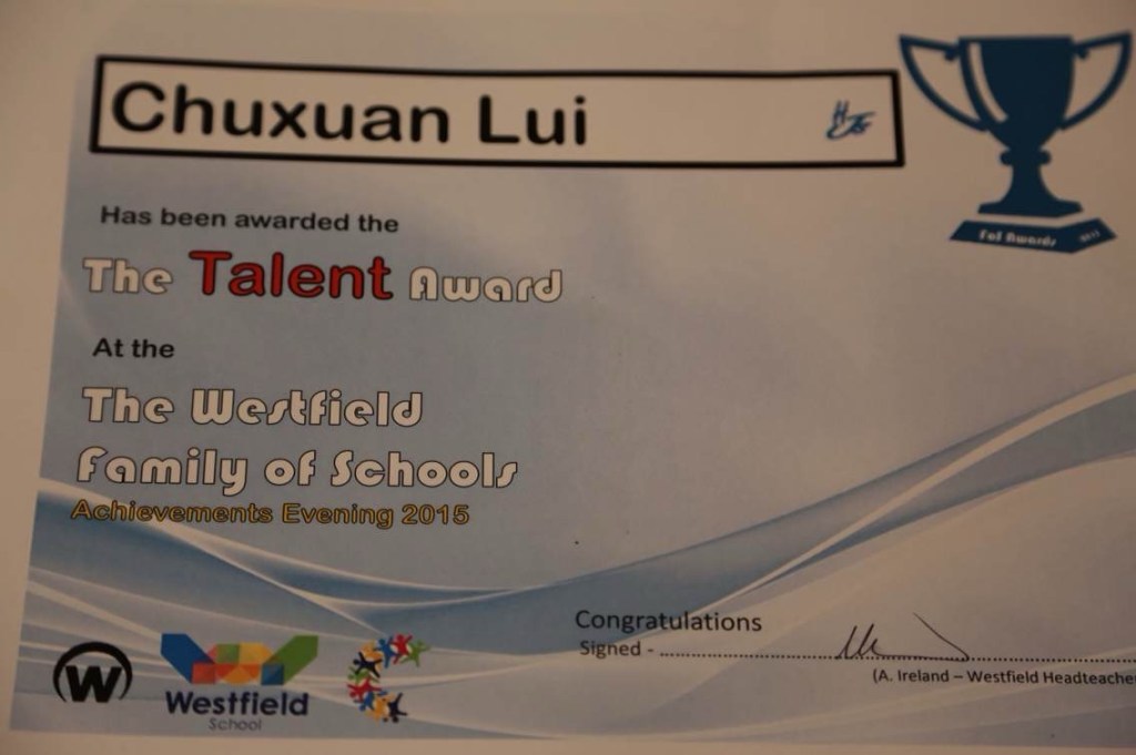 芊芊再次被评选为Westfield学区年度优秀小学生,凭借优秀的英文写作和出色的钢琴演奏获得“最佳才艺奖”,去年获得“最佳学习态度奖”,并受邀当场弹奏她近乎满分的考级曲目。[强][强][强]