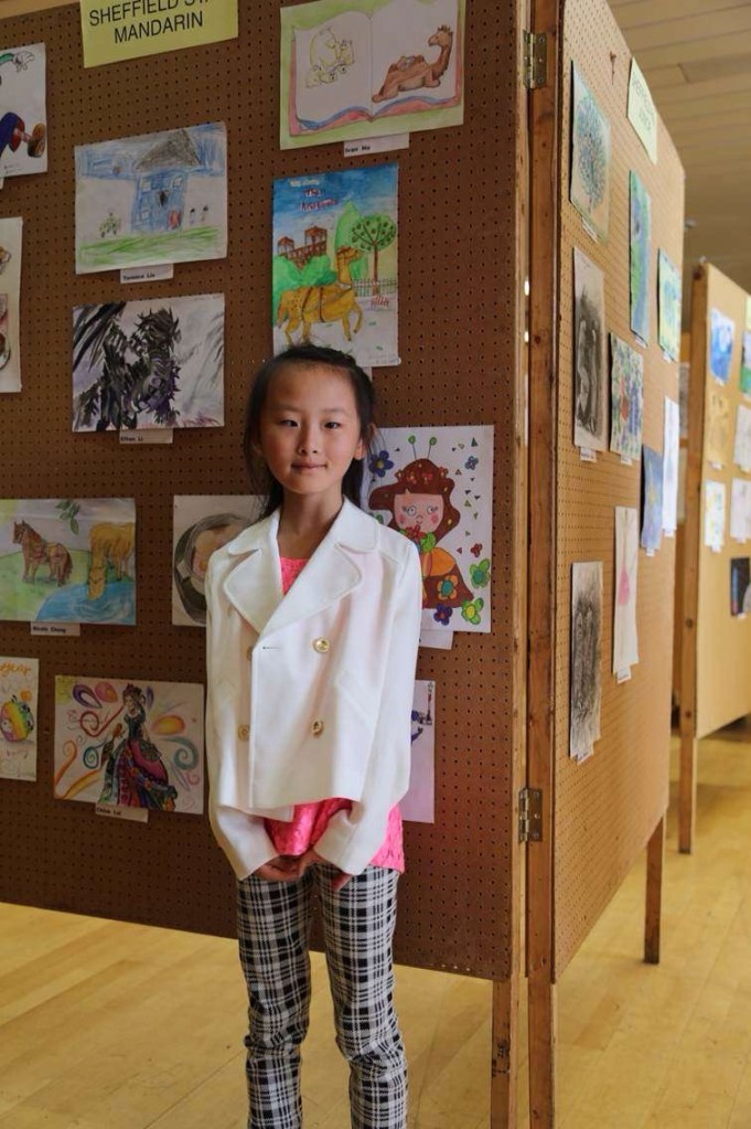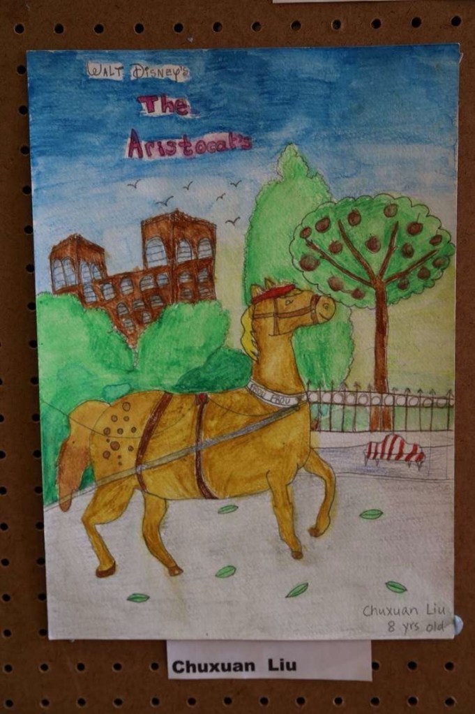 课外绘画班的韩老师带着她的学生们参加谢菲尔德中小学生绘画作品展。图3是芊芊小朋友8岁时的作品。图4-5中的两幅作品堪称专业水平,来自同一位中学生。