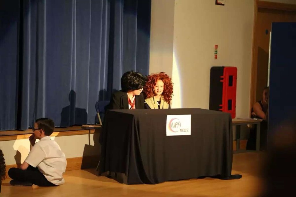 芊芊舞蹈学校的年度汇演。芊芊在小品里出演新闻主播[偷笑]
