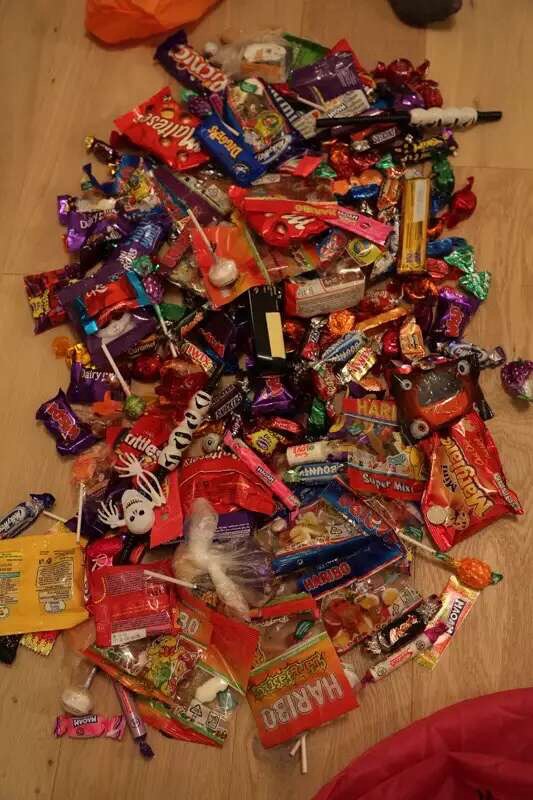 又到了一年当中甜胖子最喜欢的节日 – 万圣节。盛装亮相,出去讨糖果。不到六点就出门,八点半才回来,战绩辉煌。芊芊的“僵尸”妆是我的处女作,平生第一次给人上妆,还凑合……