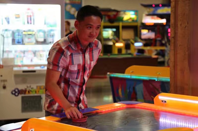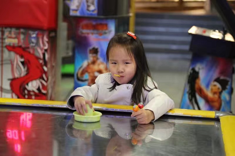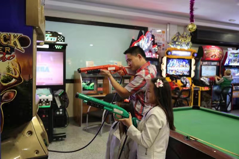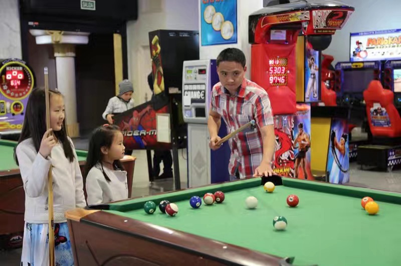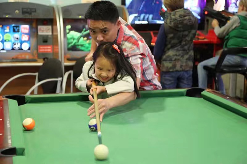 在集市上看到一个印在体恤上的标语很有哲理:我没有50,只是有着32年成人经验的十八小伙。我们的学生时代,没有电脑,没有手机,课余时间大部分都扔在了街边的游戏室和桌球厅。如今宝刀半锈,聊发少年狂。经验十足的十八年少,带着俩女儿重温当年的意气风发。