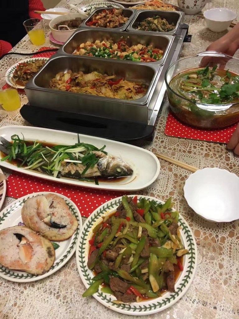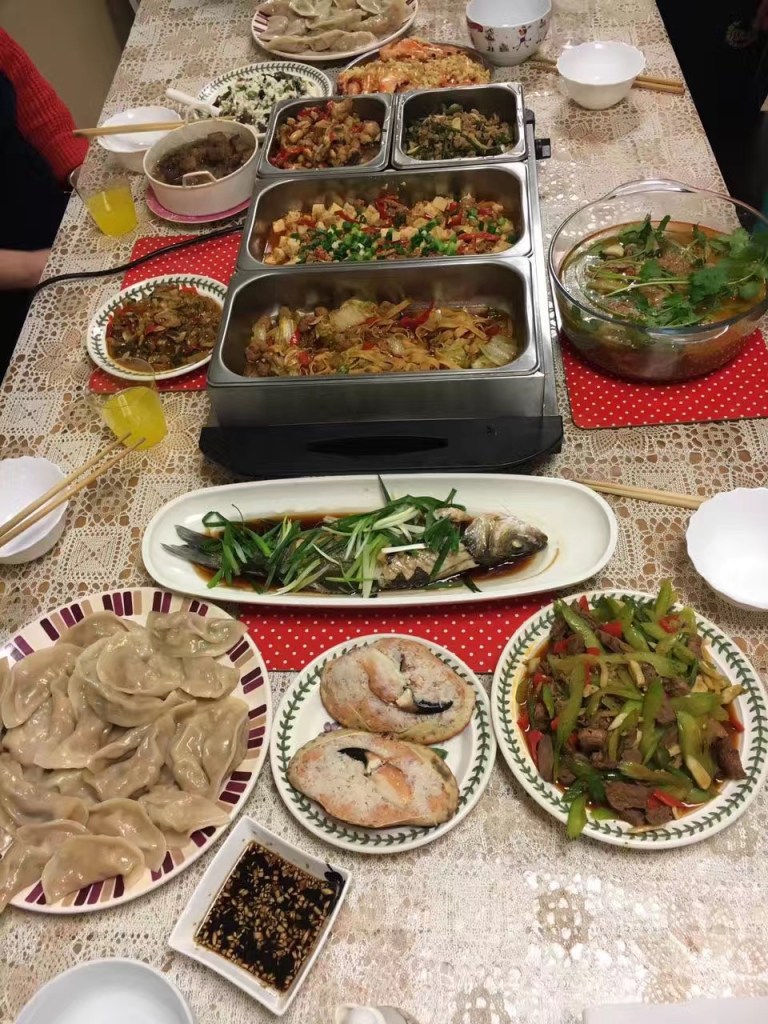 谢村最好的餐馆。今晚宴请朋友,十二道菜外加两大盘饺子,兼顾南北习俗。祝大家年年有余,日子过得红红火火。