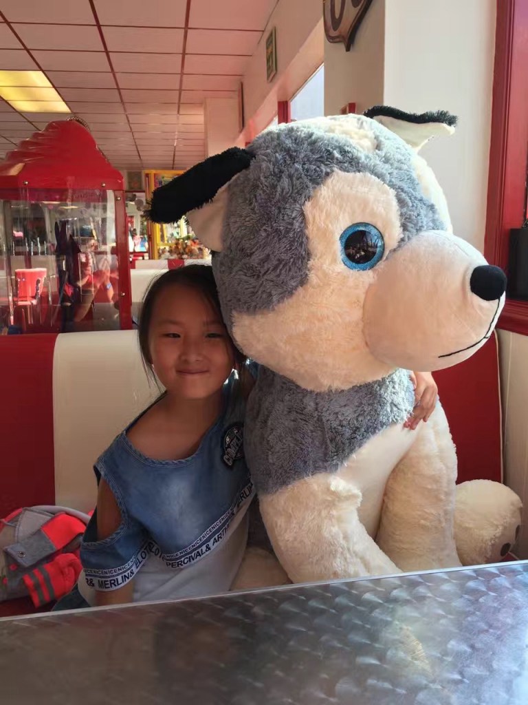 平时勤练投篮,在游乐场一投即中,帮芊芊赢得一个大娃娃[得意]