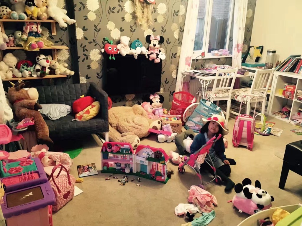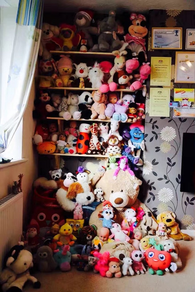 谢谢罗姝同学支招,也感慨于妈妈们都有早起的习惯。我家儿童房收拾得干干净净的时候也挺爽心悦目,就是保持不了两天。大抵家中有俩孩子的皆是如此。她俩的娃娃们确实很多,这还只是冰山一角,其他都堆在各自的卧室里。估计得有150多个。超宠女儿的爸爸的必然结果[流汗]