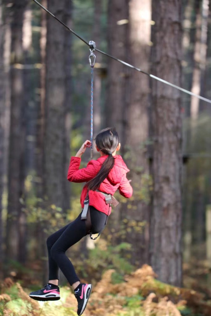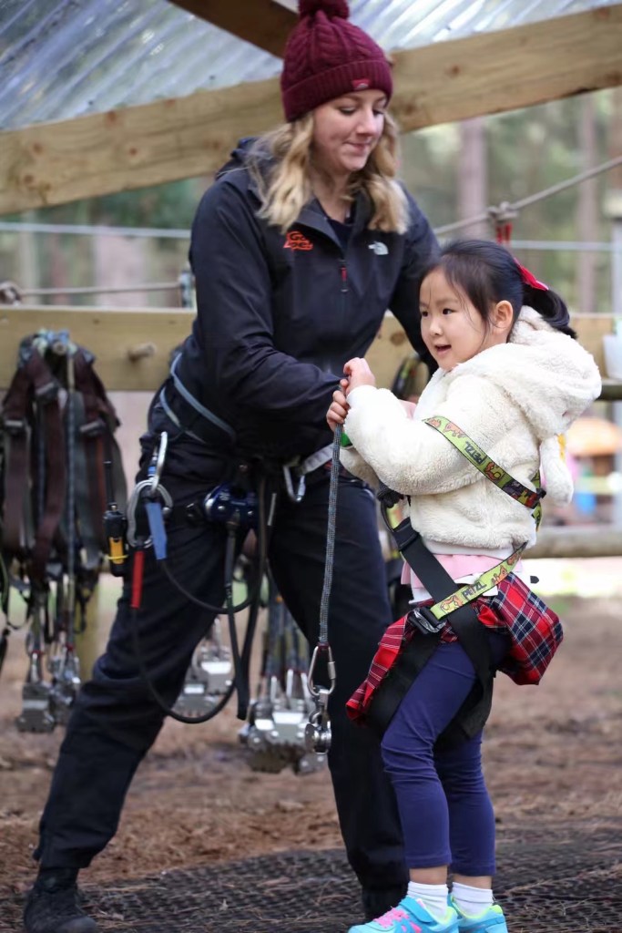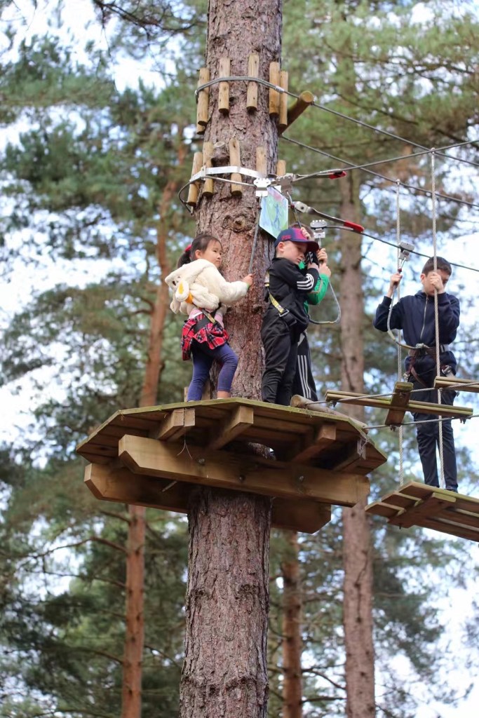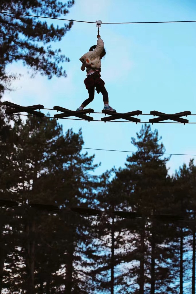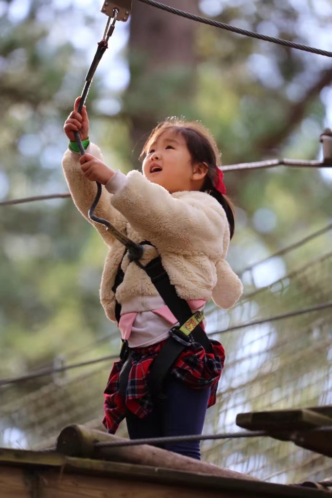 周日去森林公园爬树。她俩胆子大,不似妈妈那般恐高,等再大些可以陪我一起去跳伞。