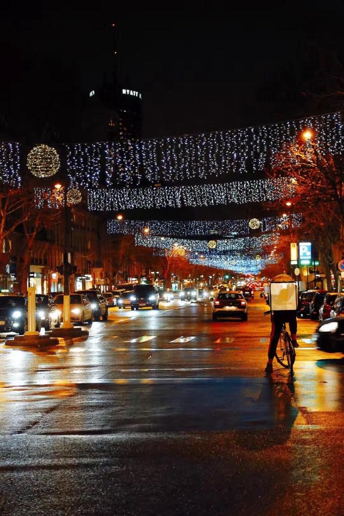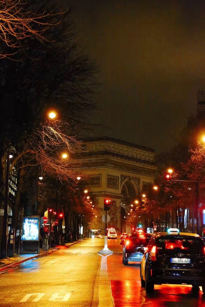 巴黎的夜景很迷人,微雨后的路面映着昏黄的街灯,流露出一种莫名的妖娆。明信片般的街景几乎可以信手拈来。