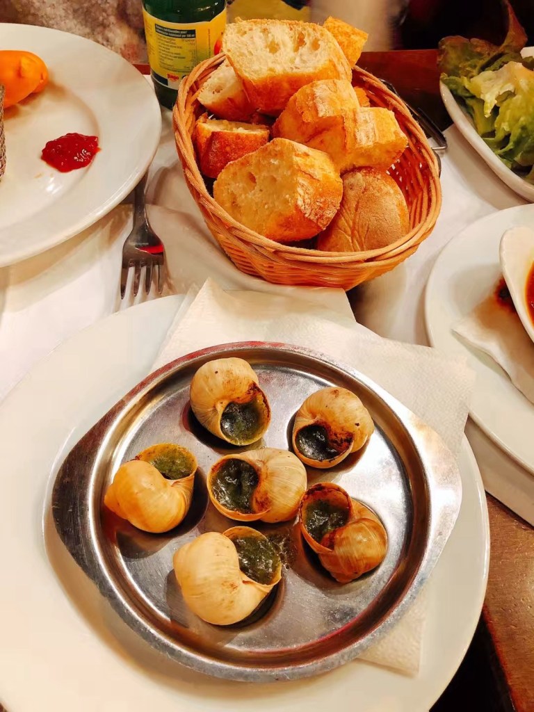 巴黎乃艺术之都,游玩的景点自然是各大博物馆。小女生们对欣赏艺术瑰宝兴致乏然,好在晚上埃菲尔铁塔下有圣诞集市和滑冰活动,玩到11点才回酒店。法国菜中颇负盛名的焗蜗牛,肉质极似田螺,口味却远不如我炒的田螺肉。菜式作为一个国家的文化名片,也需要不时地吹捧和宣传,我们湖南人老实本分,所以炒田螺至今还是道上不得台面的农家菜。