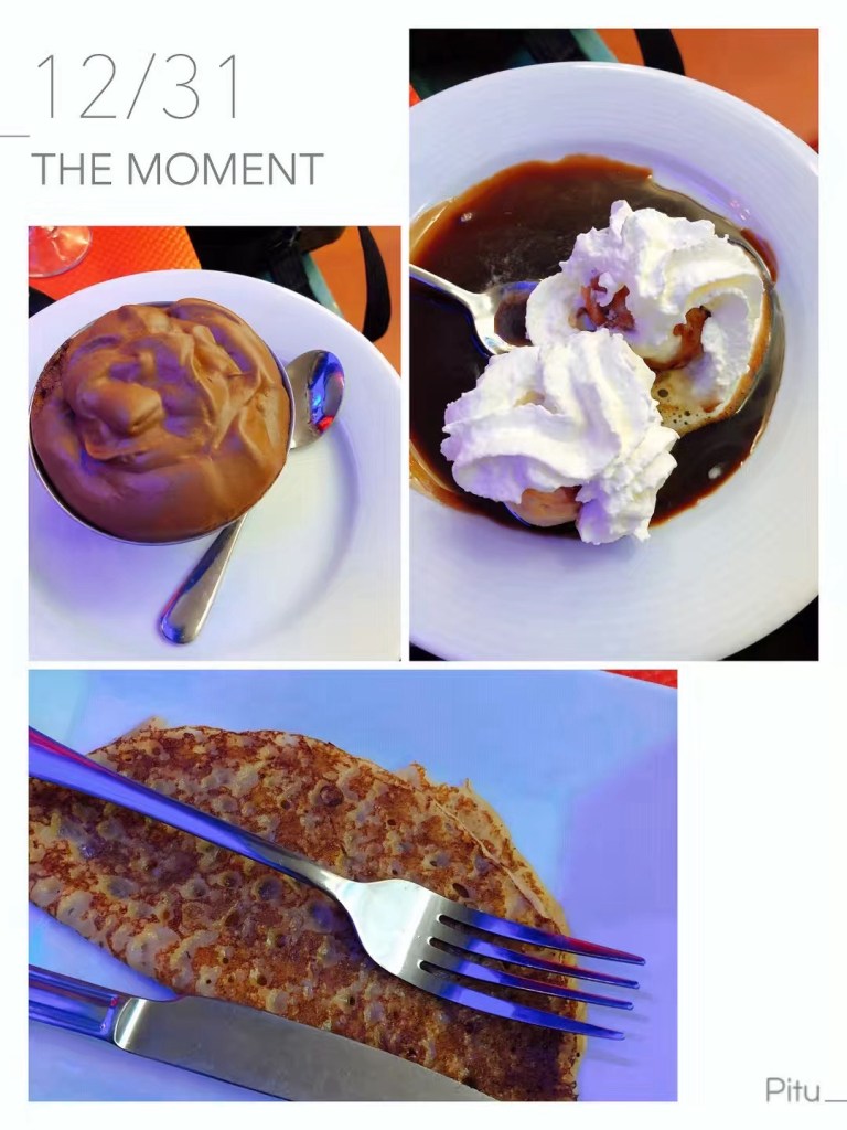 中午在一家超有格调的餐馆享用一顿正宗的法菜。法国人慵懒散漫,就连上菜都非常慢。我们坐在餐厅里各种自拍玩尽,头盘和主食都快消化完了,饭后甜点还没上来。在这里一顿饭吃俩小时是好正常的事情。