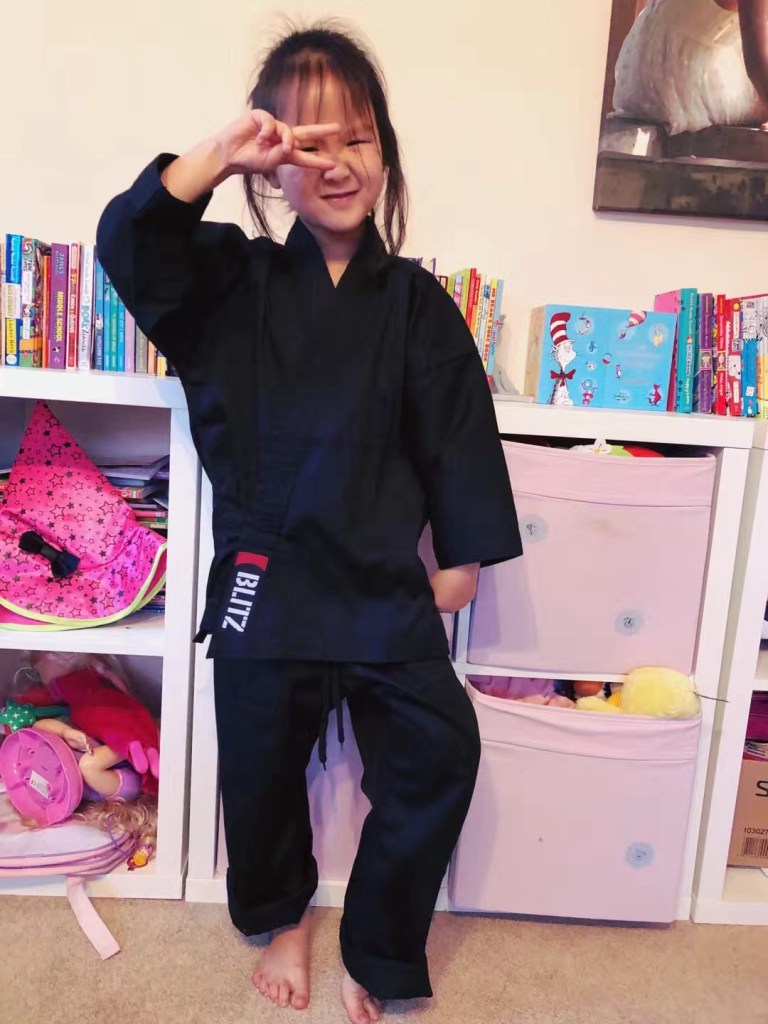 甜胖子的课外活动丰富。跆拳道、蹦床、游泳、戏剧、钢琴、外语(中文)。回到家叽里呱啦不停地说,爸爸没空听,姐姐懒得理,就自己搬出一堆娃娃来开大会。