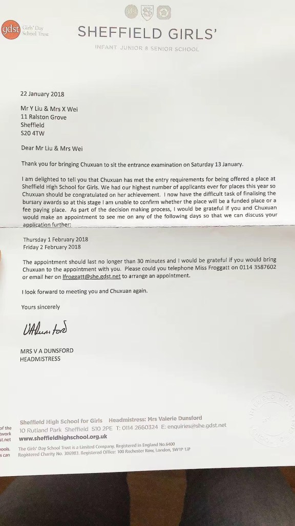 芊芊不负众望力压群雌,以前10名的成绩考取英格兰北境最优秀的贵族学校-谢菲尔德私立女中,并受校长邀请参加奖学金的面试。今年是有史以来报名人数最多的一年,一届录取名额却只有100位。