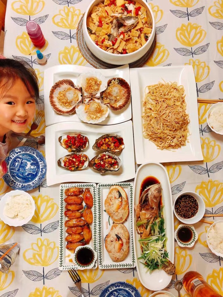 周末海鲜大餐,庆祝芊大小姐的骄人战绩。清蒸石斑鱼,香辣生蚝,蒜蓉粉丝蒸扇贝,麻辣水煮鲈鱼,清蒸螃蟹,可乐鸡翅。她俩的最爱其实是可乐鸡翅,一人半盘,吃完后姐妹俩每人两盒冰激凌。甜胖子的胃口一点都不比她姐姐小,择校时她最关心的问题是“学校的伙食好吗?”