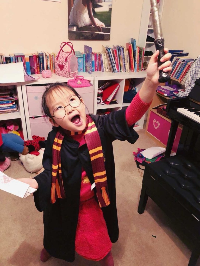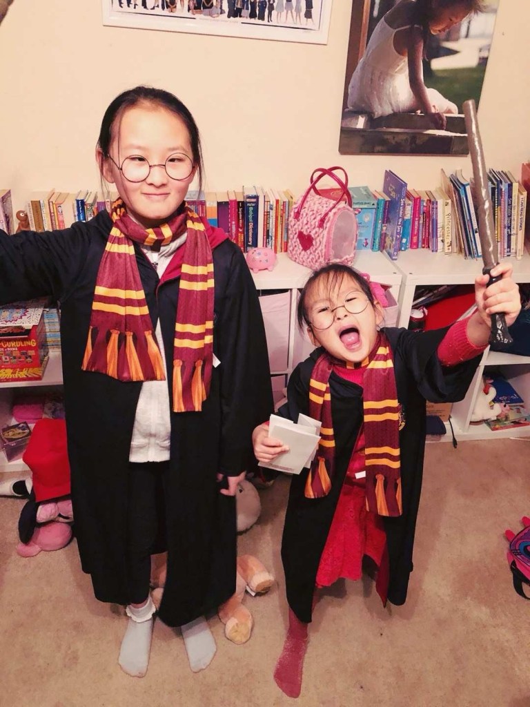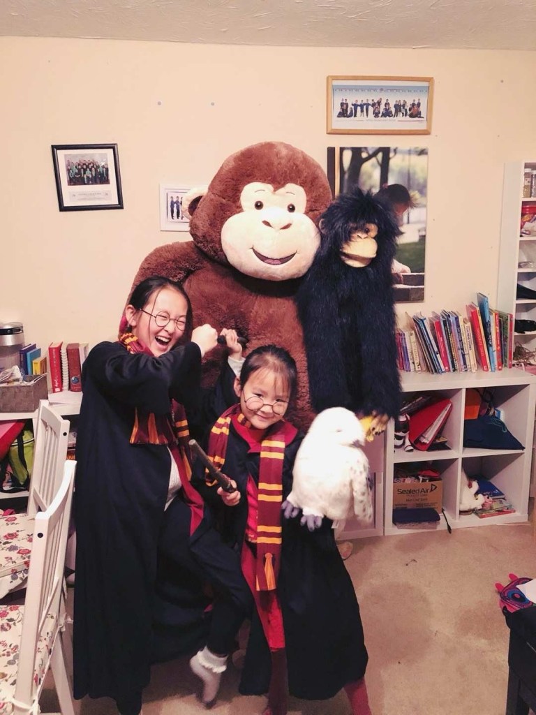 快到世界读书日了,今年俩妞的主题装是哈利波特,我扮猩猩。