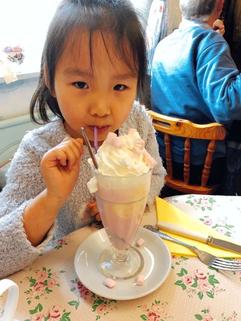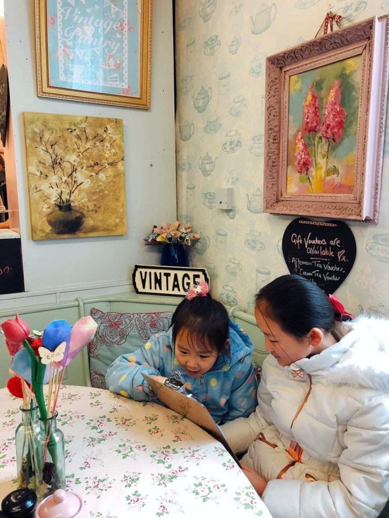 复活节假期第一天,老婆又加班,带俩宝贝逛古玩市场。古玩中心这家小咖啡店非常有情调,古色古香的陈设,传统英式下午茶。
