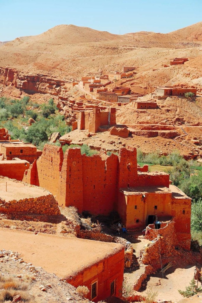 清晨6点45出发,翻过海拔2260米的阿特拉斯山脉,来看龙妈的渊凯城。Aït-Ben-Haddou是一座建立于十一世纪的军事要塞,至今保存完好。好莱坞的诸多大片皆于此地取景,最有名的当属“角斗士”和“权利的游戏”。要塞如今全是卖纪念品的小贩,遇上拍摄期,他们大多都会去跑龙套,权利游戏的骨粉在这里时常会遇见“奴隶甲”和“士兵乙”之流。甜胖子买了身本地女孩的传统服装,竟也挺上相,赚足了导游和司机的疼爱,芊大小姐早已过了由父母买衣服的年龄,穿着打扮得她自己说了算。山区的农民异常贫穷,图7是他们真实的民居,泥砖土墙,残垣断壁。摩洛哥贫富差距巨大,全国90%财富集中在10%的人手中,普通老百姓平均月收入才刚刚200英镑,其中低技术工作的月收入才120英镑,比英国法定最低工资低出8倍多。这里的小费通常都是1-5 迪拉姆,我们给了司机100 迪拉姆的小费(约合8英镑),司机小哥顿时笑得合不拢嘴。