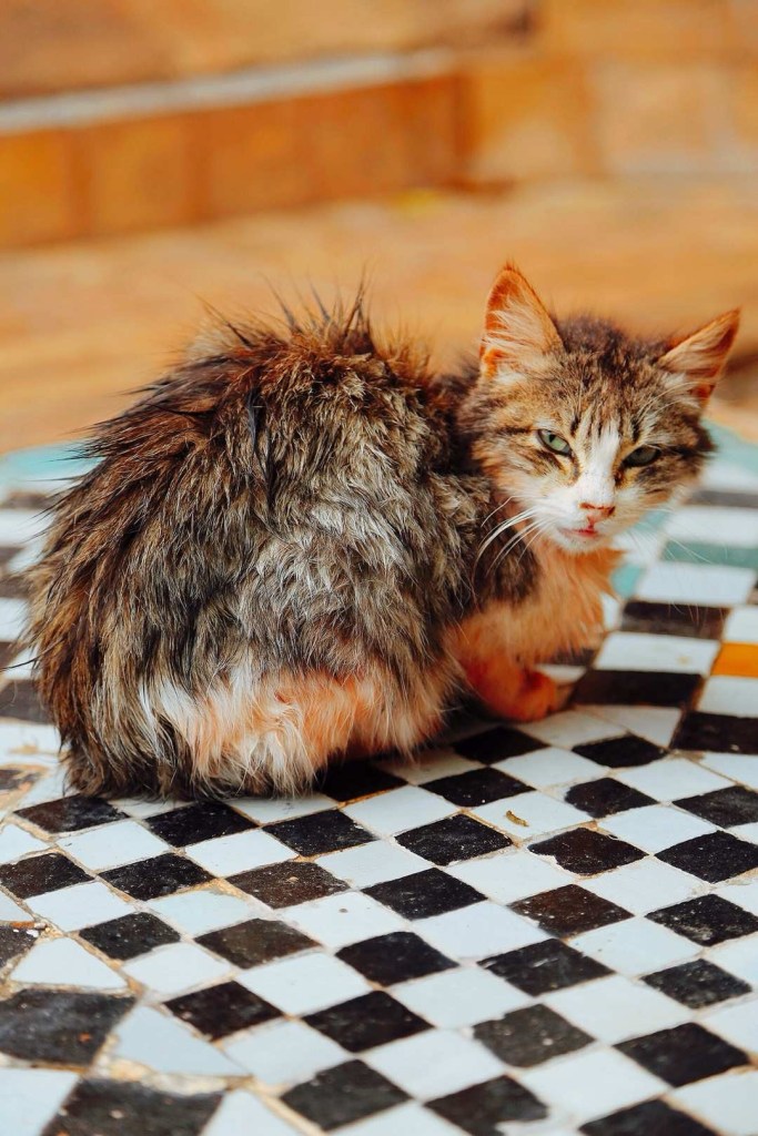 摩洛哥有着数量极其庞大的流浪猫,导游说有两百万,虽有浮夸之嫌,但这里的流浪猫确实随处可见。很多都瘦骨嶙峋,营养不良,部分还有残疾和重病。它们生活在集市和居民区,主要以人类的生活垃圾为生,偶尔能逮只老鼠打牙祭。在历史上,它们让摩洛哥成功地避免了黑死病,但如今这里的居民大多都对它们比老鼠还厌恶,打骂、驱赶、捕杀。它们虽然不是宠物,但依然优雅可人,仅以两朵雨后玫瑰(摄于废弃的宫殿),来怀恋它们,生存不易却娇美灿烂。你可以不爱,但请不要杀害。