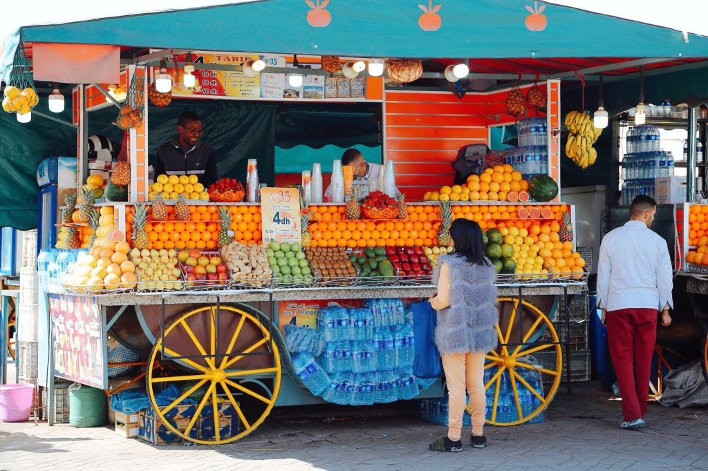 马拉喀什是摩洛哥的古都,但这里的名胜古迹大多已经消逝在历史的长河中,存世的仅有库图比亚清真寺和几处被洗劫一空的皇宫。看惯了欧式皇宫,在我眼里这里的宫殿也就是个大一点的庭院,跟心目中金碧辉煌的阿拉伯宫殿有着天壤之别。这里的小贩不让游客“乱”拍照,拍照是要给小费的,图6中的面包师傅“玉照“是我用5迪拉姆买来的,老婆还嫌有点贵。一杯鲜榨果汁只要4迪拉姆。马拉喀什以红墙建筑为主,但除了几处特别留给游客拍照用的建筑外,一般民居的土墙其实没那么红。