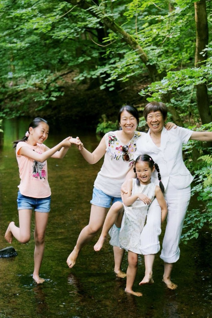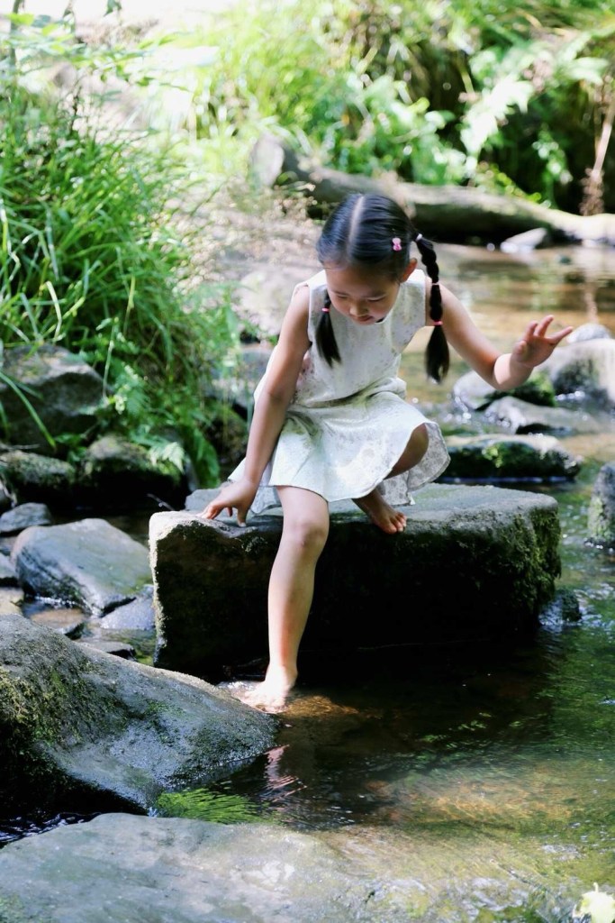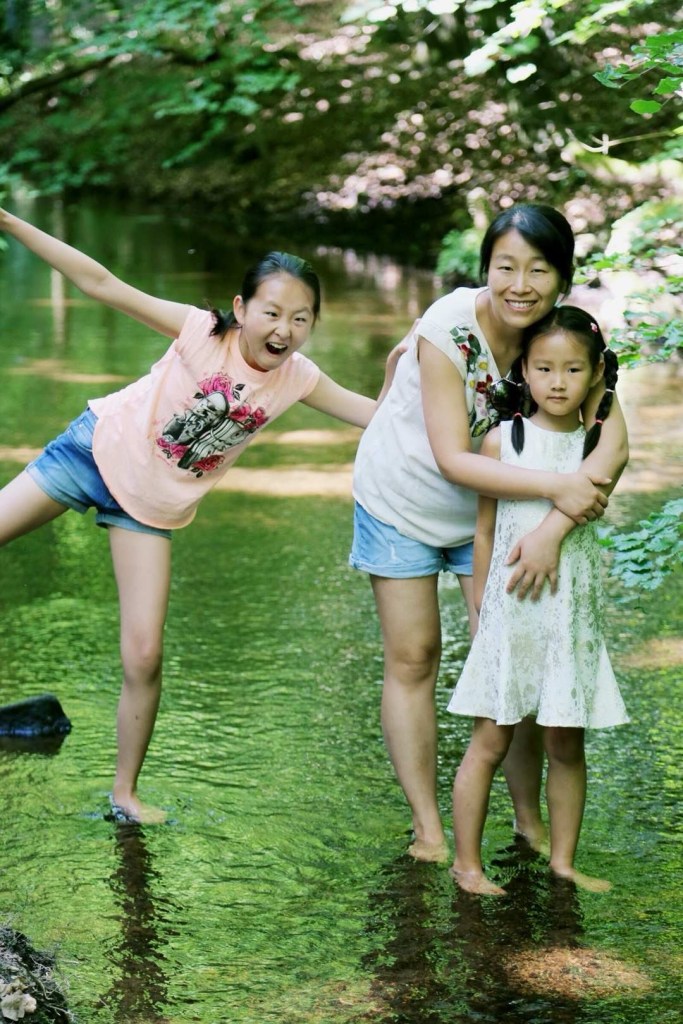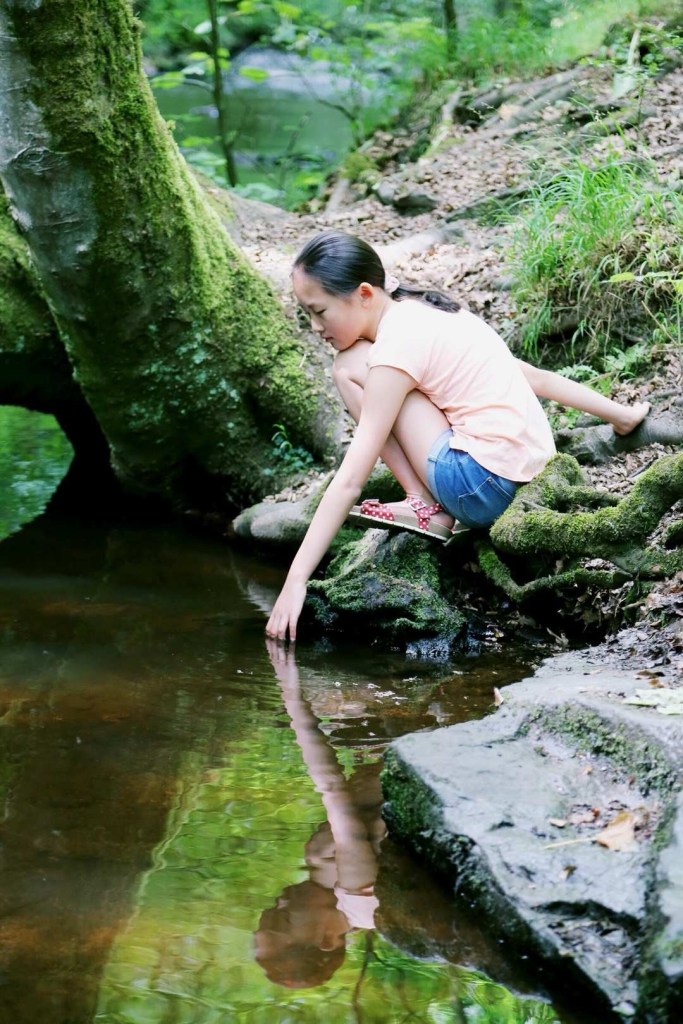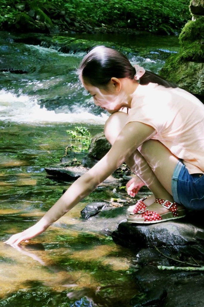 近半个月来英国一改几十年阴云密布的气候特征,破天荒地暴晒了俩星期。昨天全家人在海滩晒黑了三个色度,今天溜到River Riverlin的密林中避暑。清浅的山涧倒映着碧绿的树荫,顿觉凉爽。