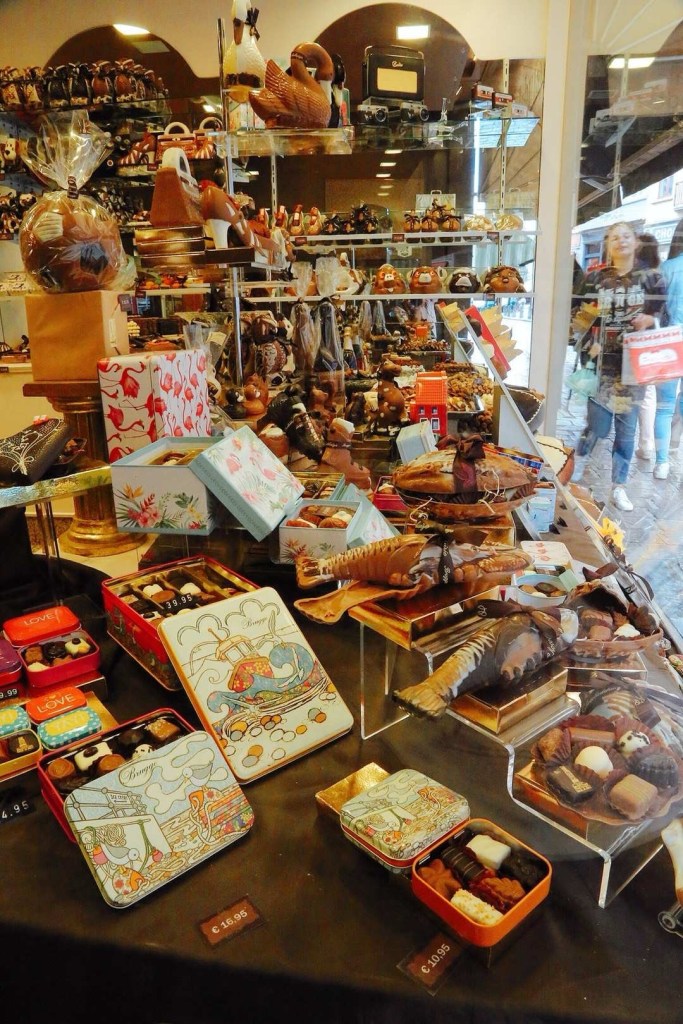 除了闻名遐迩的巧克力,比利时的啤酒和手工针织品也极具特色。布鲁日的2be酒馆有堵著名的啤酒墙,陈列着多达250种啤酒。对酒精饮品没有一滴兴趣的我,只喜欢静静地默视吧台里的灯红酒绿。比橱窗里琳瑯满目的巧克力制品更要命的是,每进一家商铺,热情好客的女主人都会请我们免费品尝她家”祖传秘制”的巧克力,一轮商店逛下来,甜胖子吃得乐不思蜀。