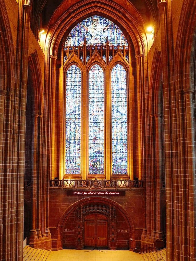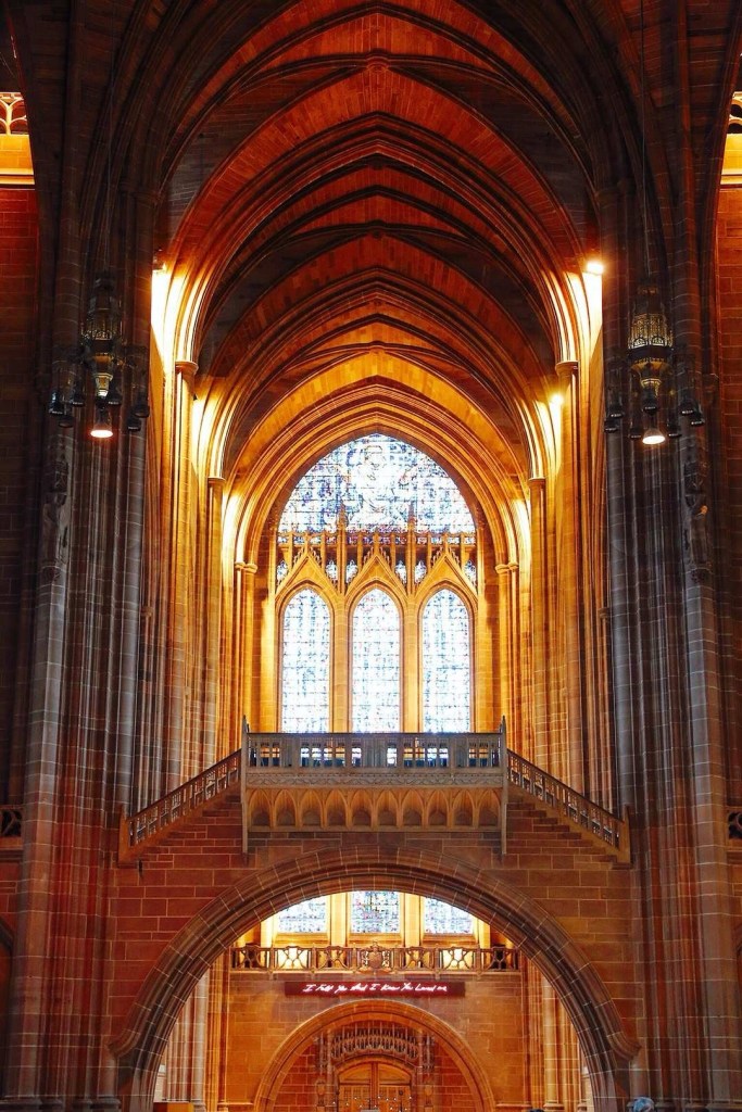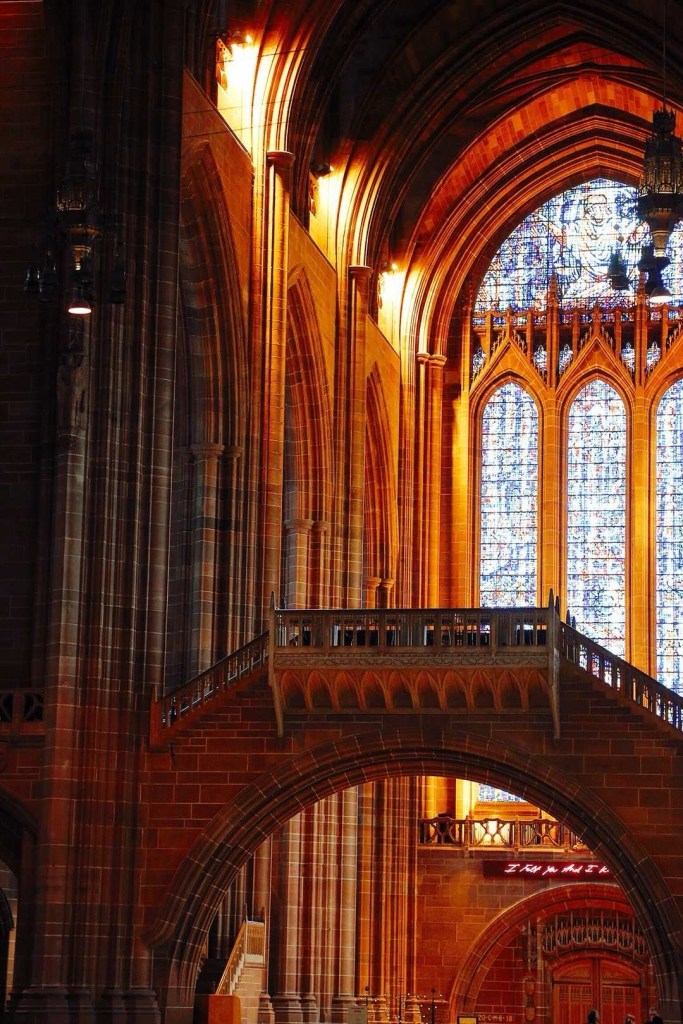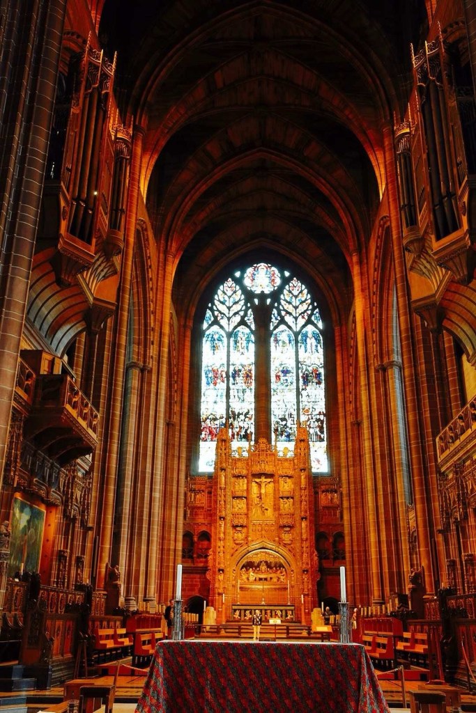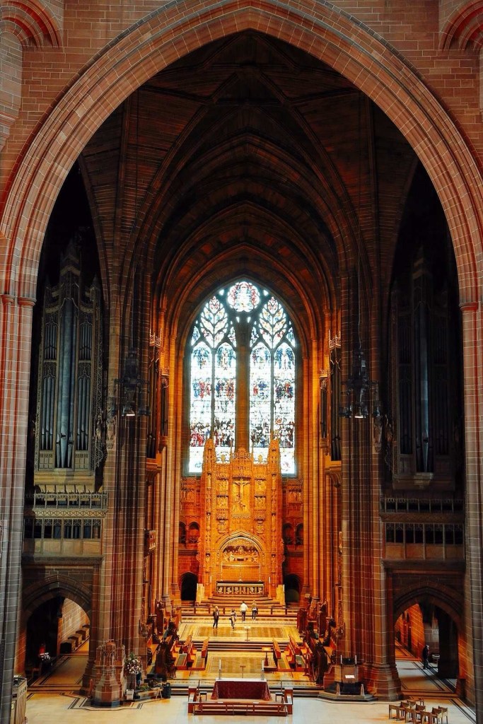 世界第五大教堂,利物浦大教堂。兴建于1904年,其外观委实不能与中世纪哥德式教堂相媲美。内部壮观华丽,空灵幽静。