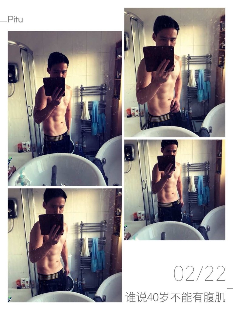 我不相信年龄是健身的障碍,我只相信恒心与毅力。17%的体脂率还不是最佳的状态,但已经初见成效。