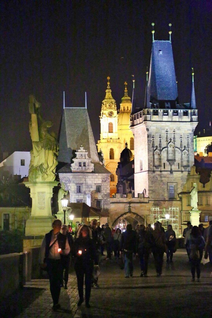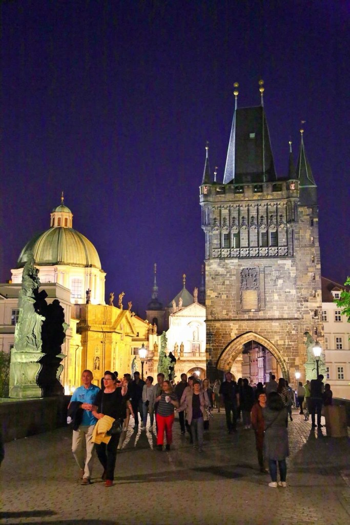 等老婆带着甜胖子睡下,独自到查理大桥上拍夜景。即使已是晚上十点,桥上的游人仍是熙熙攘攘川流不息。