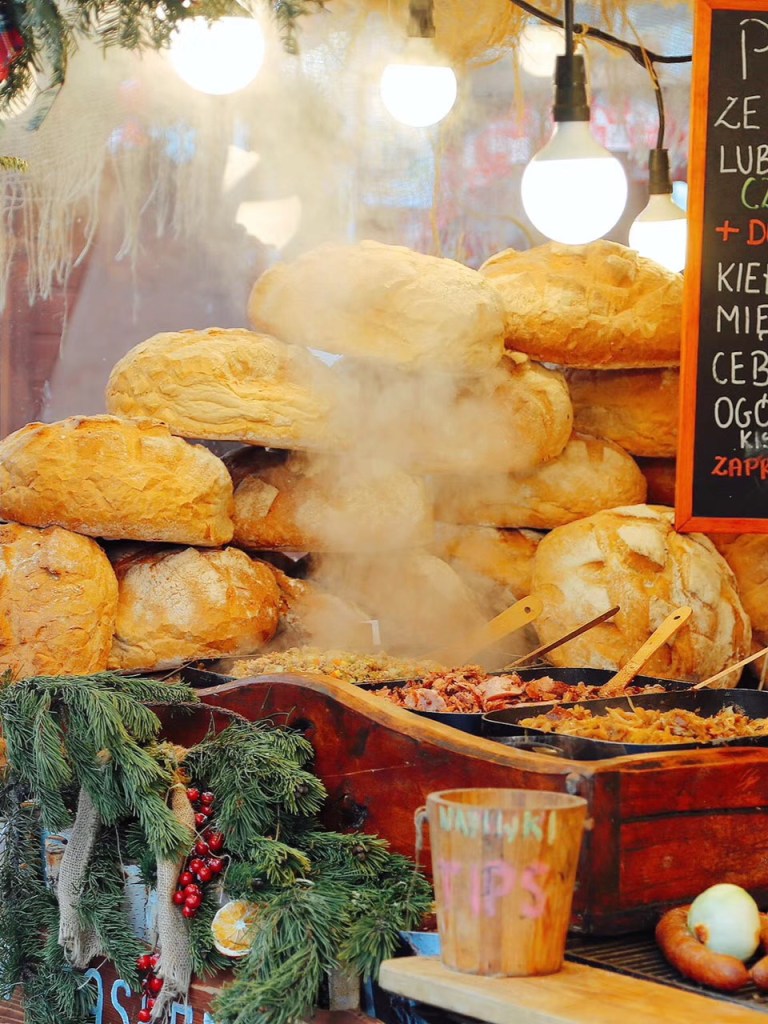 克拉科夫的非官方标志是Obwarzanek面包圈🍩,据说是全世界面包圈的鼻祖。波兰菜基本属于德国菜系,但地处欧亚大陆的交界处,这里也融合了许多东方元素。德国菜系以猪肉为主,各种香肠和烧烤,口味偏咸;而东方的饺子,除了各种肉馅和蔬菜馅外,还有奶酪馅和苹果馅,口味偏甜。我把波兰各种口味的饺子都尝了一遍,还是不如中国的饺子。甜饺子大概是中国北方人最不能容忍的,但身为南方人的我还是喜闻乐见于一些奇特口味的存在。