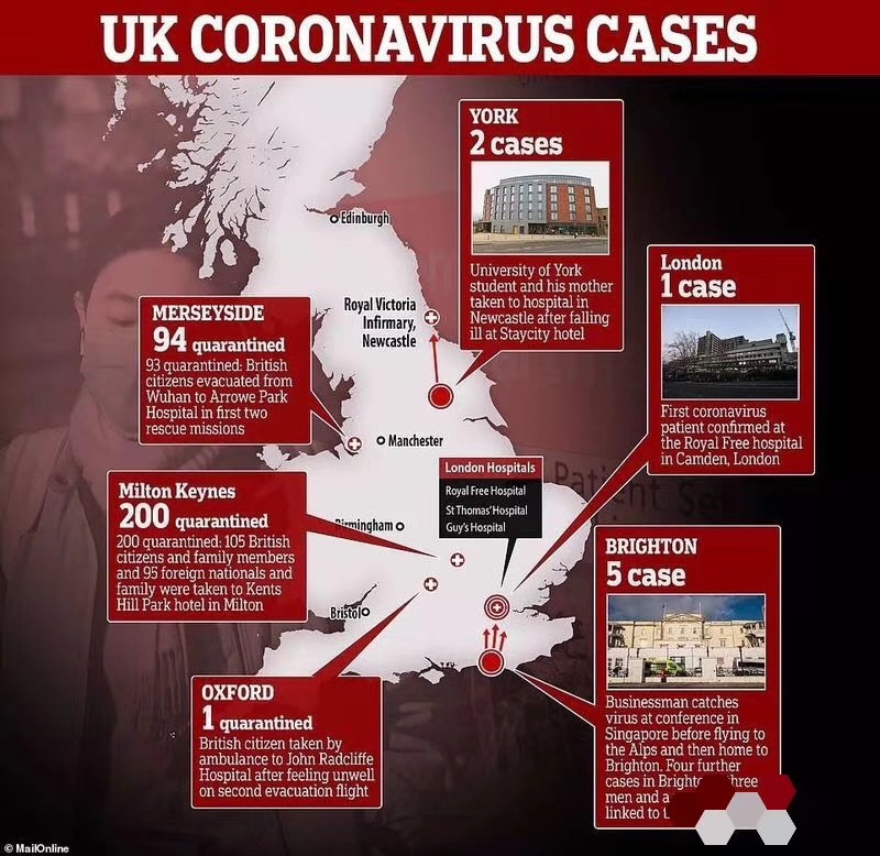 英国如今也隔离了数百人,政府积极宣传预防措施,民众不再是吃瓜看戏的心态,口罩被抢购一空(原本囤货量就不大)。