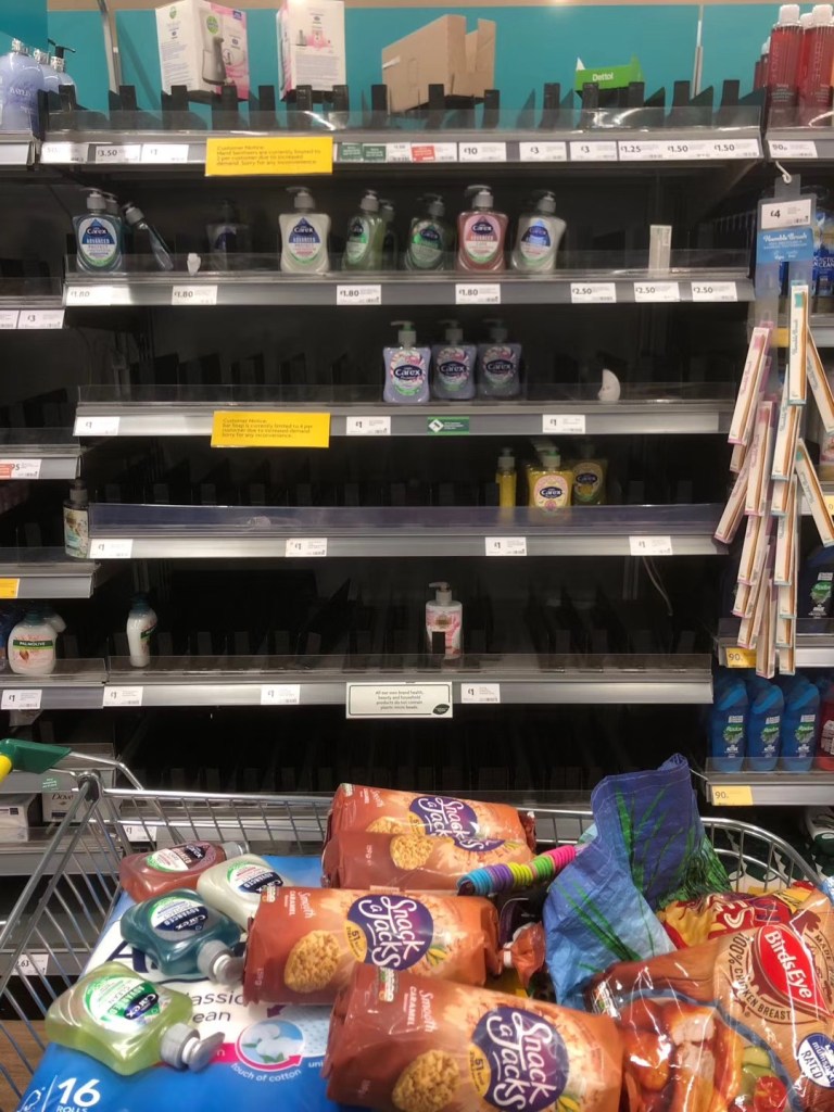 英国民众秉持着“政客靠得住 母猪会上树”的传统信念,正式开始囤积物资。各大超市对生活必须品实行限购。洗手液和意大利面的货架几乎被搬空。