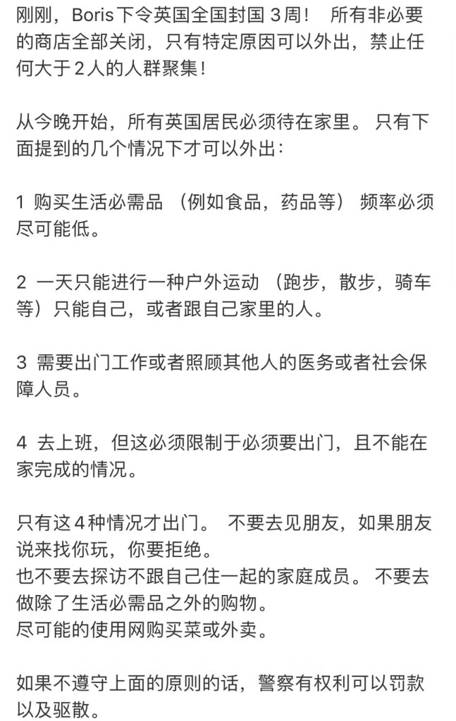 在西方世界,让民众听从政府安排是一件极其困难的事情。这个周末阳光明媚,英国民众疯了似的扎堆在海滩、公园和郊外。各大超市也是人满为患。今天老鲍终于受不了这班刁民,晚上8点半宣布封国三周。