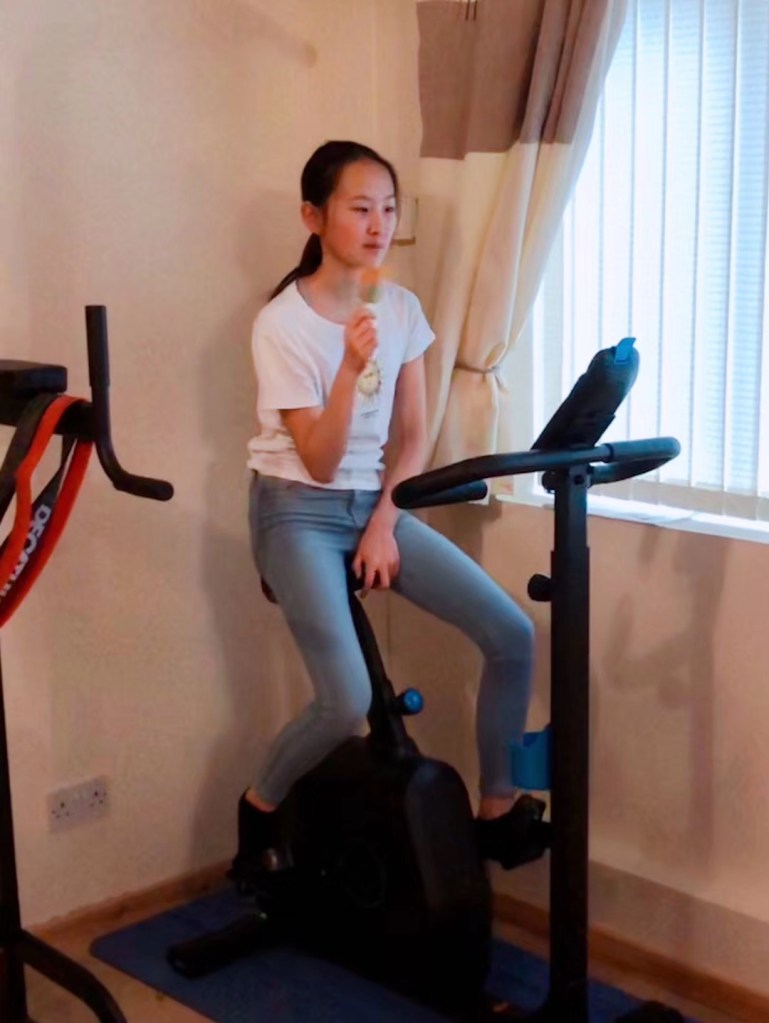 芊大小姐今天的画作颇有意思,在家关禁闭的日子也还怡然自得,闲来无事便在自行车上叼根冰棍慢悠悠地踩几圈。13岁的大姑娘已经快跟刘太一般高。
