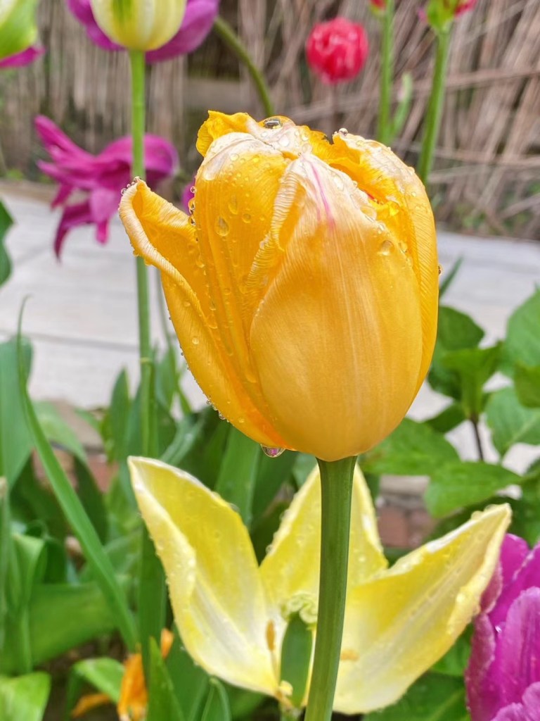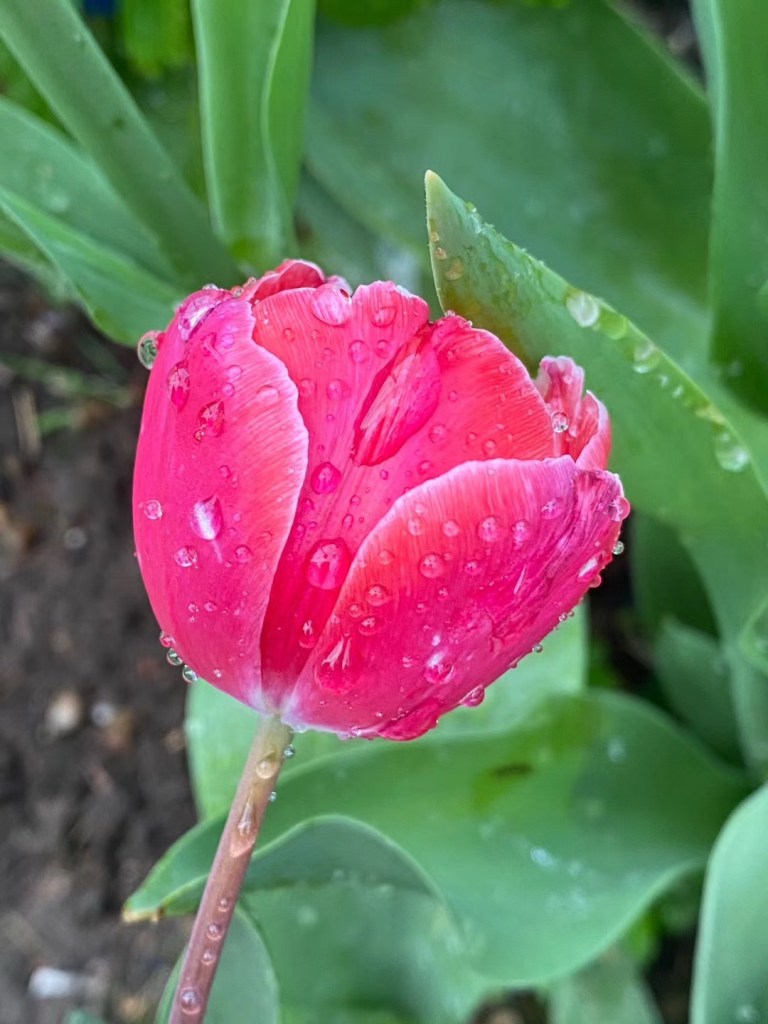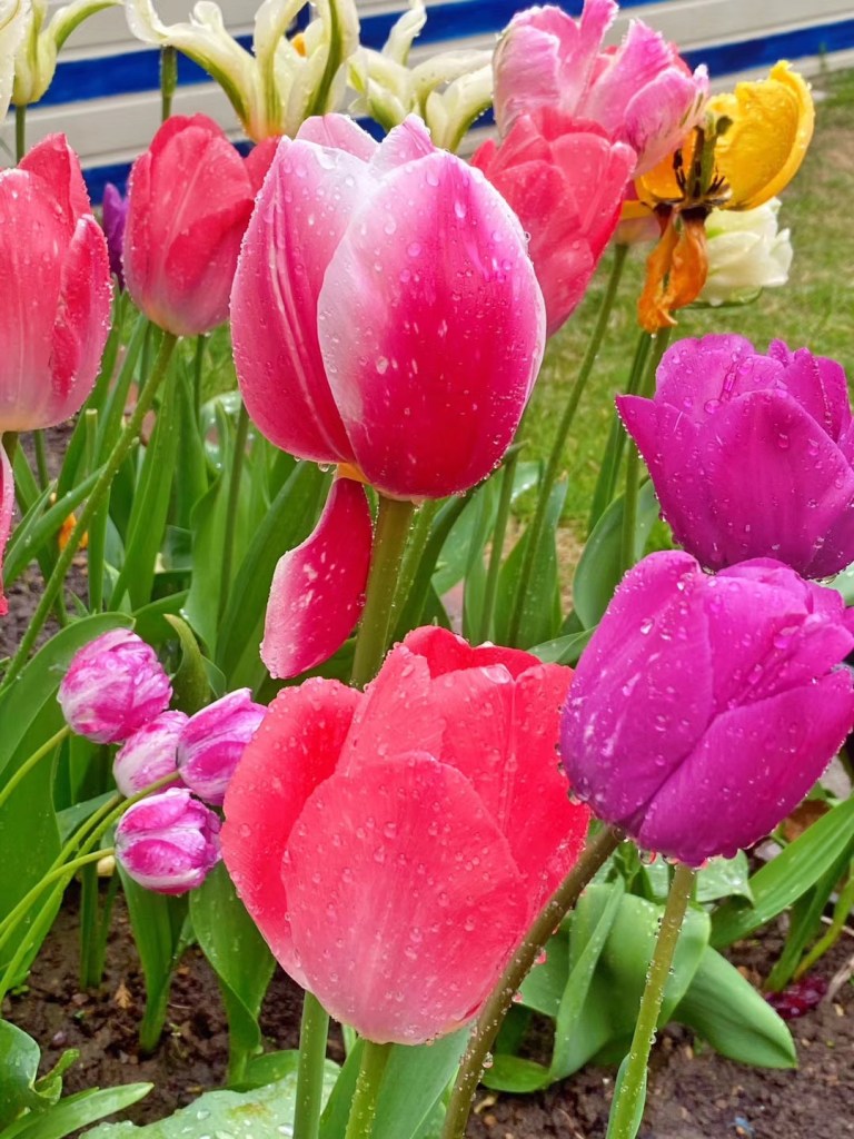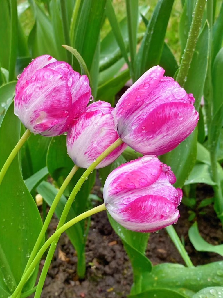 梨花带雨 海棠醉日。其实无论什么花,带点雨珠,都格外娇艳。老娘喜欢郁金香,却不会种花,一如她老人家喜欢美食却不会炒菜。去年乱栽一气的成果日趋凋零,拍点美图以资留念。