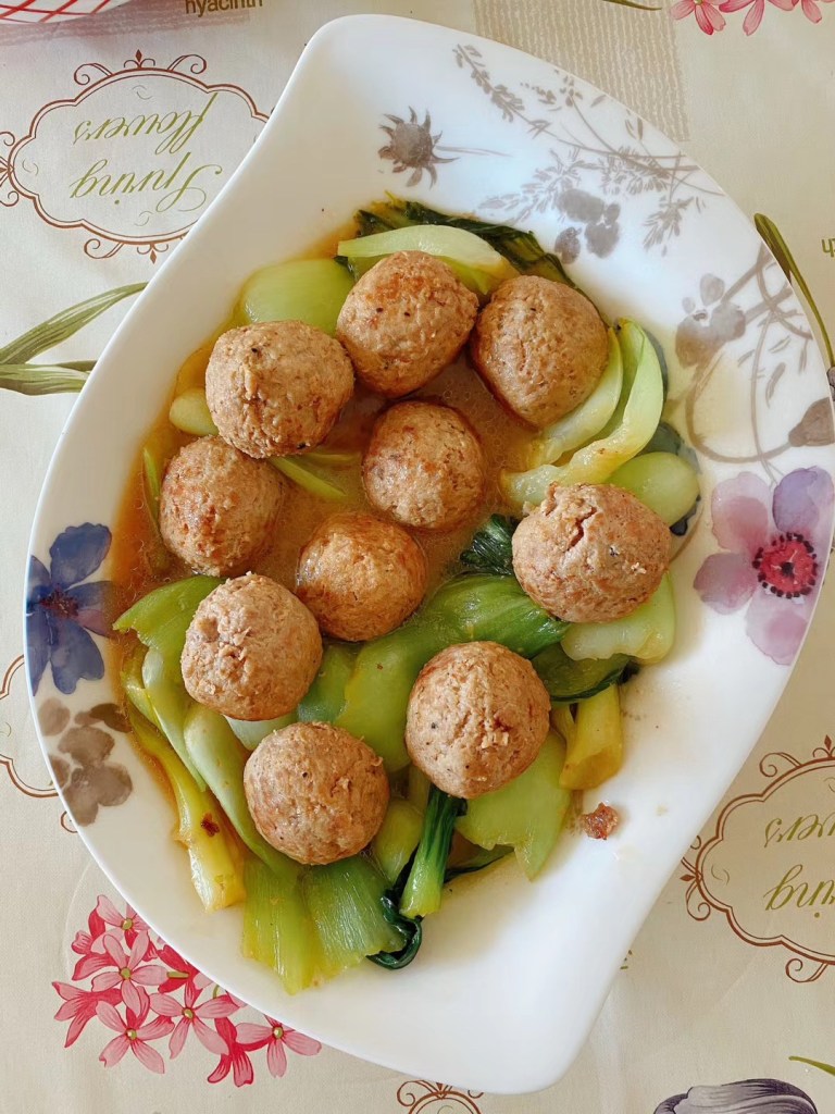 刚来英国的时候猪蹄和猪头便宜得就跟不要钱似的,一支猪蹄20便士,一个猪头50便士。因为普通英国家庭不吃这些部位。在超市拾得两支收拾得干干净净的美容蹄,给刘太打打牙祭。高脂肪高胆固醇,即便自带美容功效,吃多了最终只是个细皮嫩肉的胖子。大片牛肉粉丝才是精瘦和口感的完美结合。小白菜炖火鸡肉丸也是道不错的减肥美食。