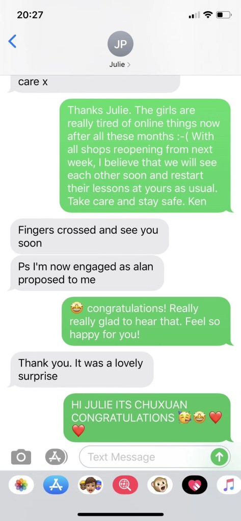 芊大小姐的钢琴老师~终~于~要结婚了…… 03年刚参加工作听前前经理介绍这位钢琴老师时她就已经是单亲妈妈,那会儿我还没结婚呢。如今熬到年过半百,女儿都快上大学了,总算把自己嫁出去了。英国有一百八十万单亲家庭,其中九成都是单亲妈妈,占亲子家庭的近四分之一。如今的社会,真是结婚越来越难,而离婚越来越容易。刘太的高中挚友也是单亲妈妈,大学英语老师,兼环球教育的金牌雅思导师,各方面条件都很不错,离婚到现在也有十四年了,竟是越来越难再嫁。朋友圈里有合适的男士麻烦介绍一下。