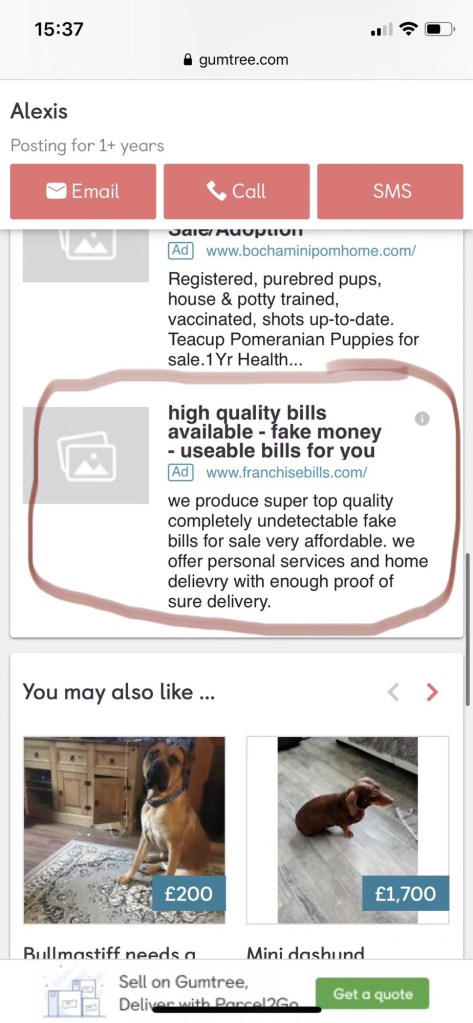 受疫情影响的生意何止是餐饮和旅游。自从政府鼓励用银行卡消费后,连假币行业都步履维艰!今天闲着无聊在Gumtree上想着给老狗找个伴,结果刷到一则卖伪钞的广告!咋一看我还以为是噱头,点进网站一看,还真是制作和销售伪钞的国际集团。这年头,连犯罪团伙都在积极自救,我们还有什么理由怨天尤人!满满的正能量啊!(毫不犹豫地报警)