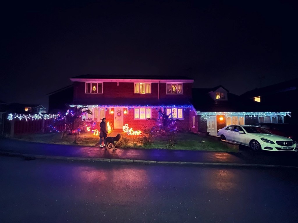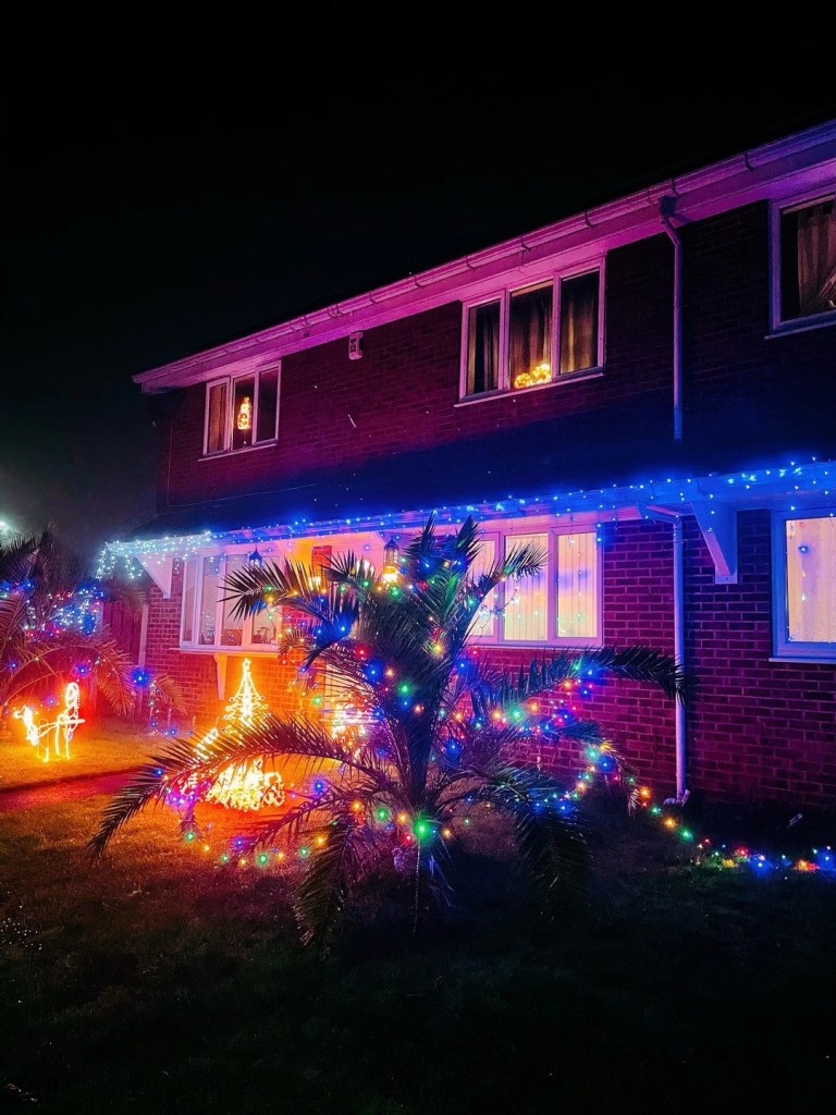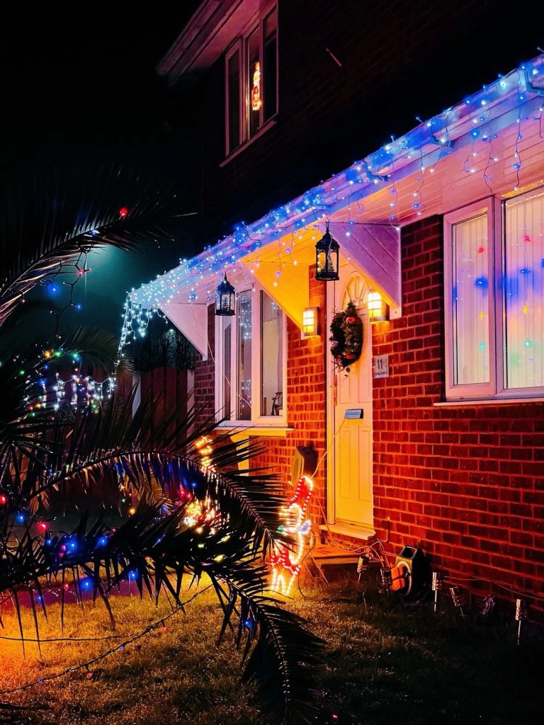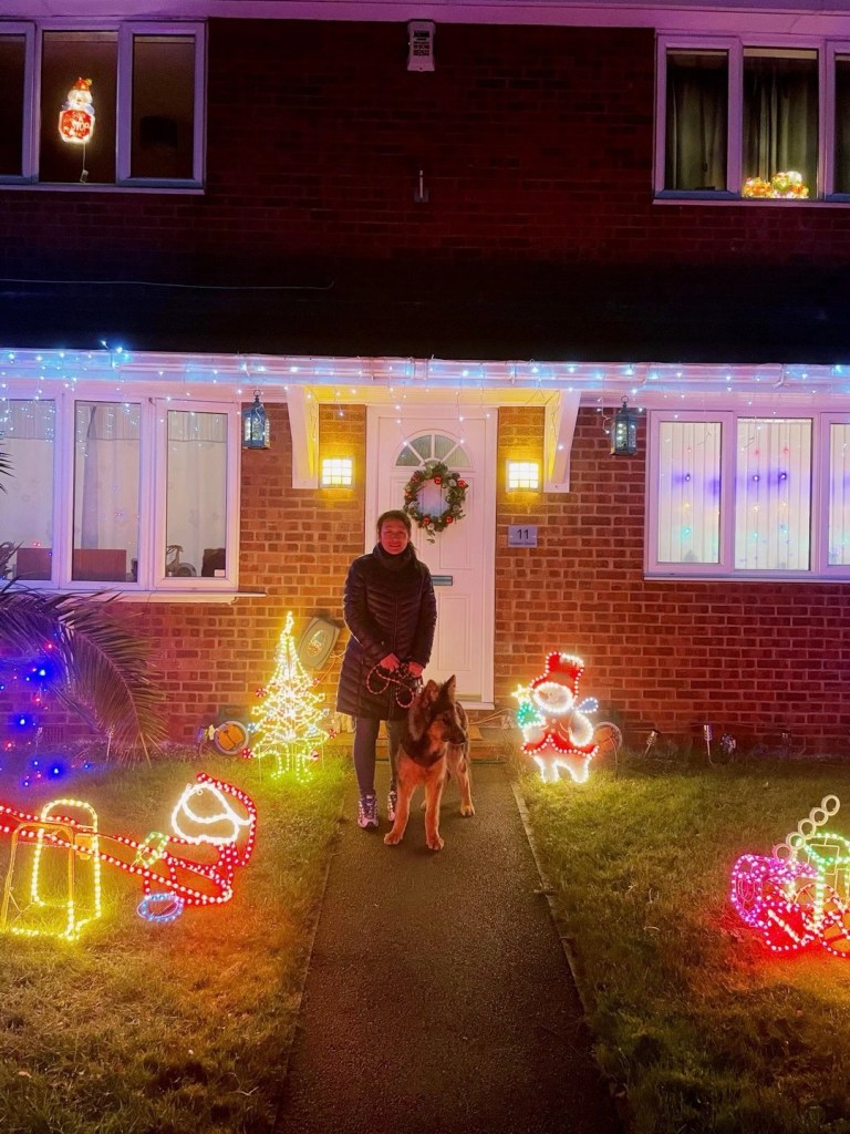 今年圣诞节不方便出远门,各家各户便都提前开始装饰房子争芳斗艳。作为谢菲尔德Halfway地区最大的宅子,我家必须当仁不让地成为本区最靓丽的景点。原想在二楼的屋檐上也挂上霓虹灯,连6米的梯子🪜都买来了,结果还是被有恐高症的刘太劝阻住。