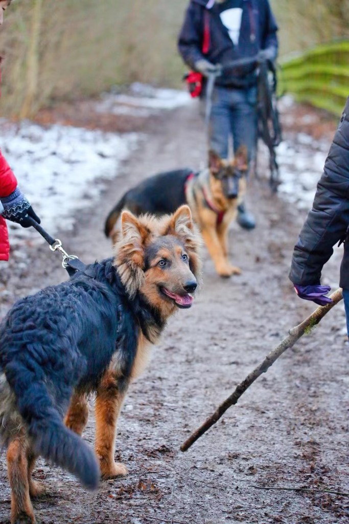 刘太明显低估了䖔的攻击性,居然约好她同事一家人同去郊外遛狗。Tyran也是德牧幼犬,比䖔小一个月,是短毛弓背品种,也就是俗称“展示系”,你也可以理解为“宠物系”,无论力量还是体型都远不如䖔这类长毛直背的“工作系”猛兽,性格也相对温和。岳父岳母当年在厄瓜多尔开金矿的时候也曾养过两只“展示系”德牧,结果根本起不到看家护院的功用。在岳母娘眼里,不管黑狗白狗,“会咬人”的狗才是好狗。