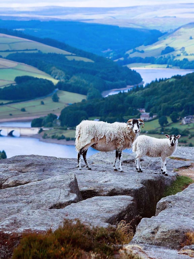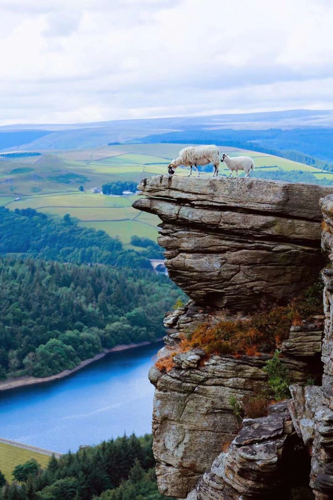 Bamford Edge是峰区国家公园里最著名的网红打卡景点。悬崖峭壁上的石坑里蓄积着清澈的雨水,吸引附近的羊群来此汲饮。怪石嶙峋的地貌也吸引大批攀岩爱好者来此一展身手。悬崖下是美景如画的Ladybower水库。