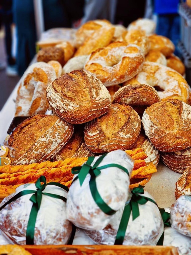 Ridgeway小镇上今天举办秋冬季的农庄与手工集市(Farmers & Craft Market),该集市每年举办两场,上一次是复活节的时候。刘太今天是特地奔着一家叫Wye Bakehouse的摊位而来的,摊主是位法国女士,烘培做得非常好,她的小女儿长得很漂亮,这么冷的天陪妈妈出摊,裹着一床小毛毯蜷在面包篮子里玩手机。