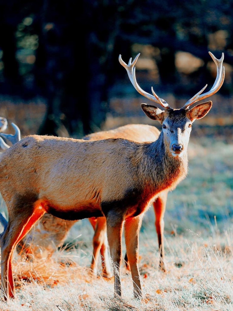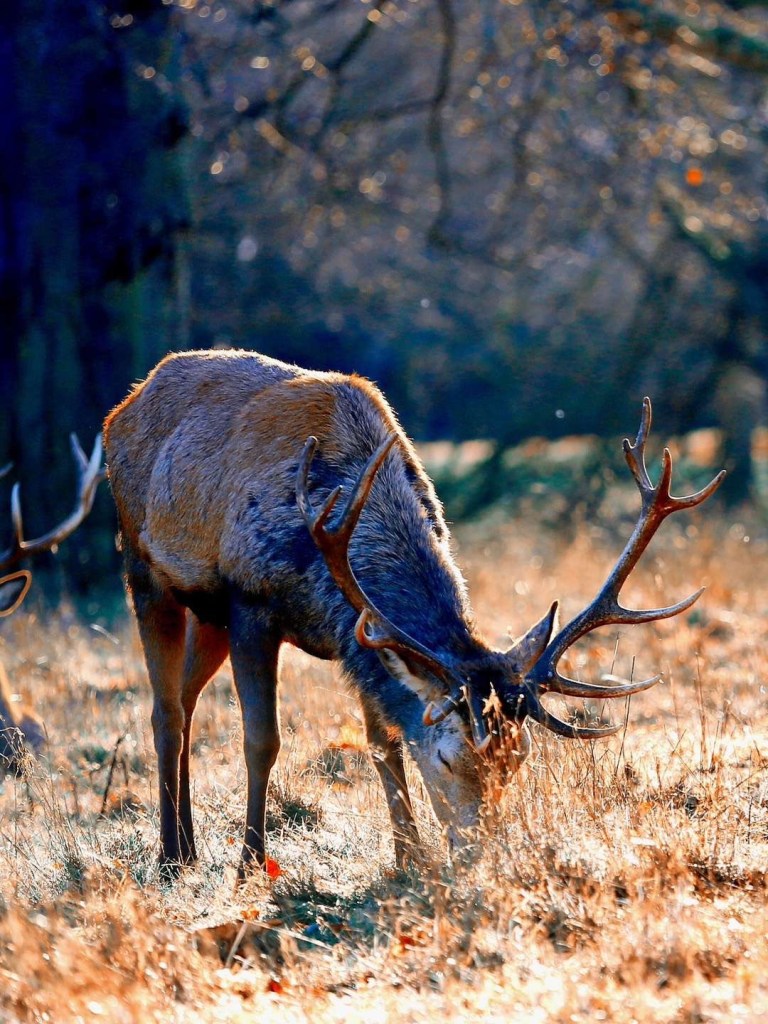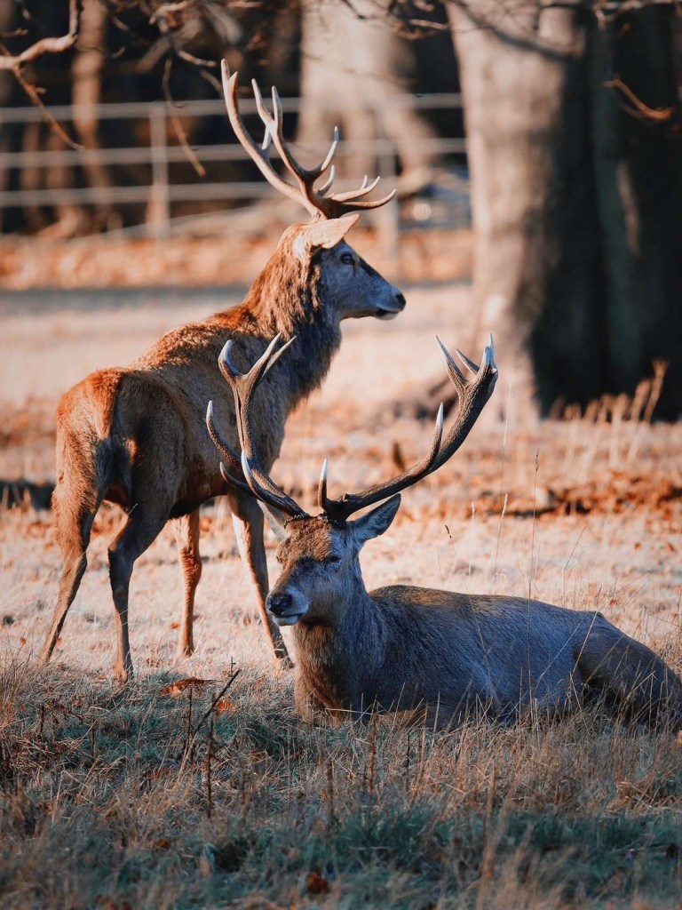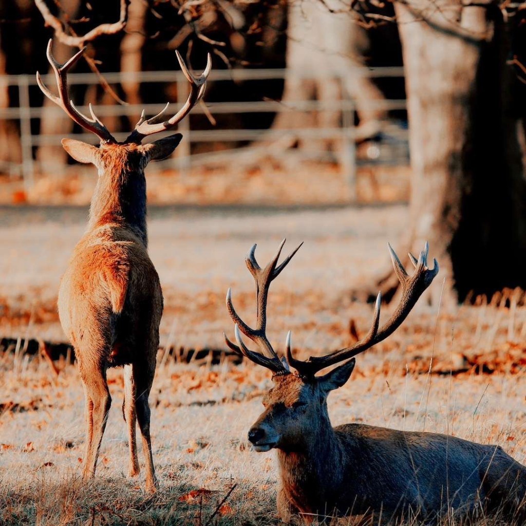 诺丁汉的Wollaton公园里有两百多头野生红鹿。每年九月到十一月是拍摄红鹿最好的季节,雄壮的公鹿们为了争夺母鹿的交配权会时常上演角斗大戏。园方为了方便游客观赏与拍摄,还特地辟出一块投喂区,吸引野鹿们前来觅食。我今天躲在鹿群旁的一颗大树桩后面,得以靠近它们。