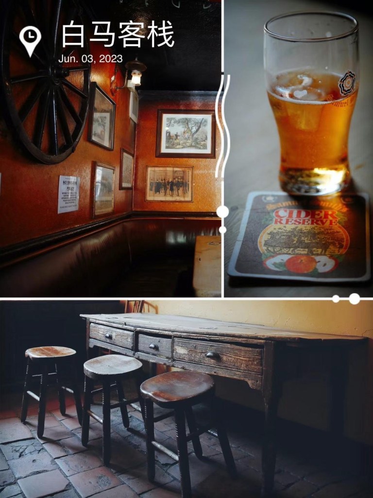 贝弗利镇中心一处修建于1666年(康熙五年)的白马客栈依旧保留着古色古香的韵味,只是我原想喝杯苹果汁,却被上了一杯苹果酒。