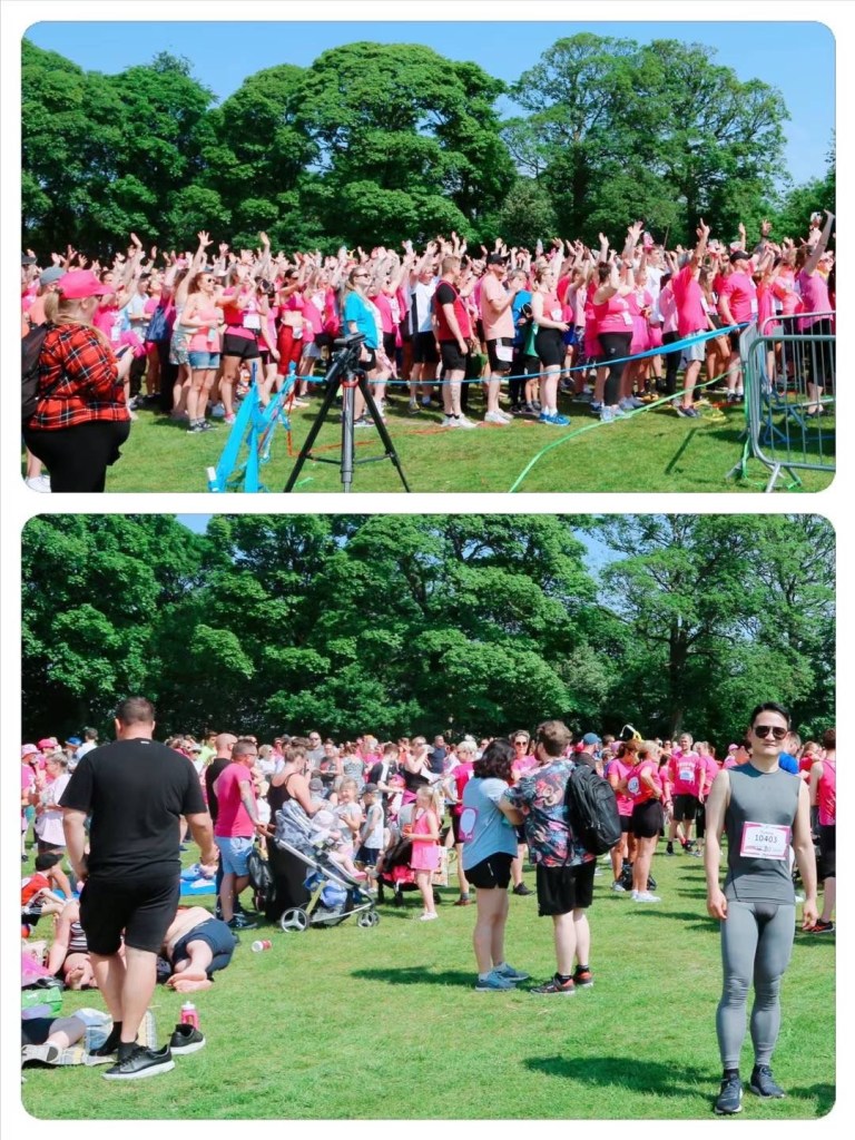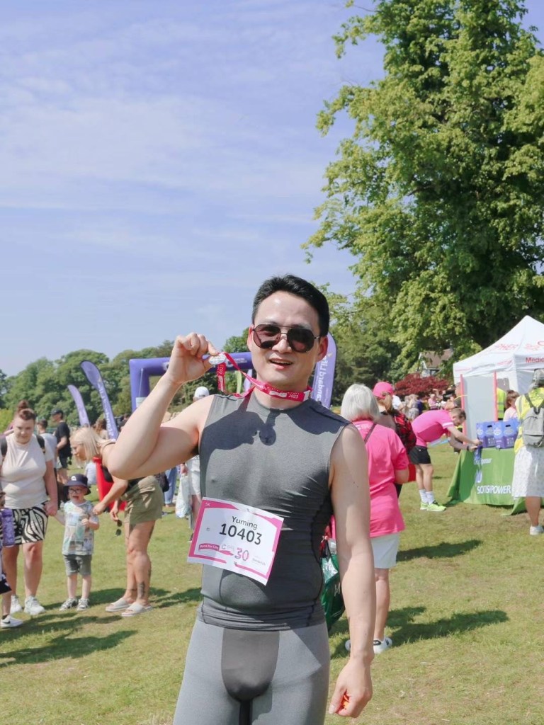 今天没给华人丢脸!从一开始就紧跟第一梯队,终于以自己最快(拼了老命)的速度跟随排头的二十来个人跑过终点🏁,将近千号小伙子大菇凉大叔大婶老头老太太们甩在身后。当然,跑得好的通常不屑于参加这种业余级别的长跑活动,但这是我朝着人生目标 “半马” 迈出的一大步。“为生命而跑”是英国癌症研究基金每年在全国各地举办的长跑活动,今年是该活动三十周年纪念,谢菲尔德参加本次长跑的人特别多,大部分人都穿着粉色纪念衫。