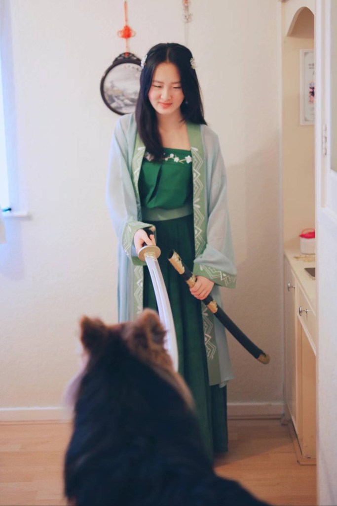芊大小姐为中国新年和女校举办的多元文化节所准备的汉服造型。腰刀和竹简是我的道具,扇子是她自己的。这一次我从国内购置了大量的汉服道具,以摄影的形式向英国社会展现我们的文化魅力与民族自豪。