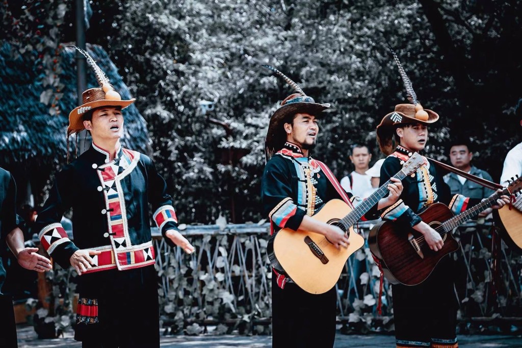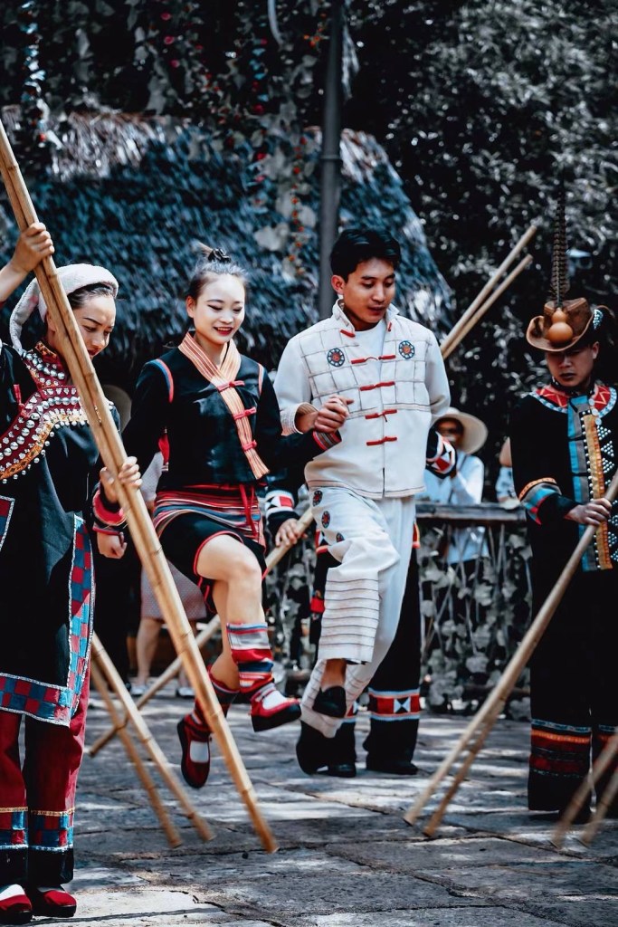 昆明的民族村有点类似于北京的世界公园,简单地把云南各少数民族的特色建筑物复制一份,然后像动物园一样七零八落地散在公园里的各个角落。并不是我所期待像湘西凤凰城芙蓉镇那样连成一片的少数民族建筑群。着少数民族服装的工作人员大多都会让你拍照,只有极少数会拒绝或躲避。园子并不是很大,园内60元一位的电瓶车接送服务是绝对不划算的,主要用户是我老娘这类连两百米路都不肯走的游客。