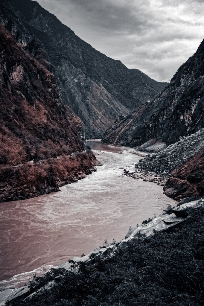 虎跳峡确实不是一处值得花一天时间来看的景点。其实就是水流湍急处有一块大岩石立在水中,居然每天有成千上万的游客来此打卡。旅行社实在是安排不出来什么像样的行程,只能在途中加了一处“三谷水”的废弃景区,而这般“小桥流水人家”的景色在英国各大小国家公园里几乎比比皆是。回程时又拉着我们在所谓的“红军渡金沙江处”坐了半小时的漂流。实在是浪费时间的一天行程。