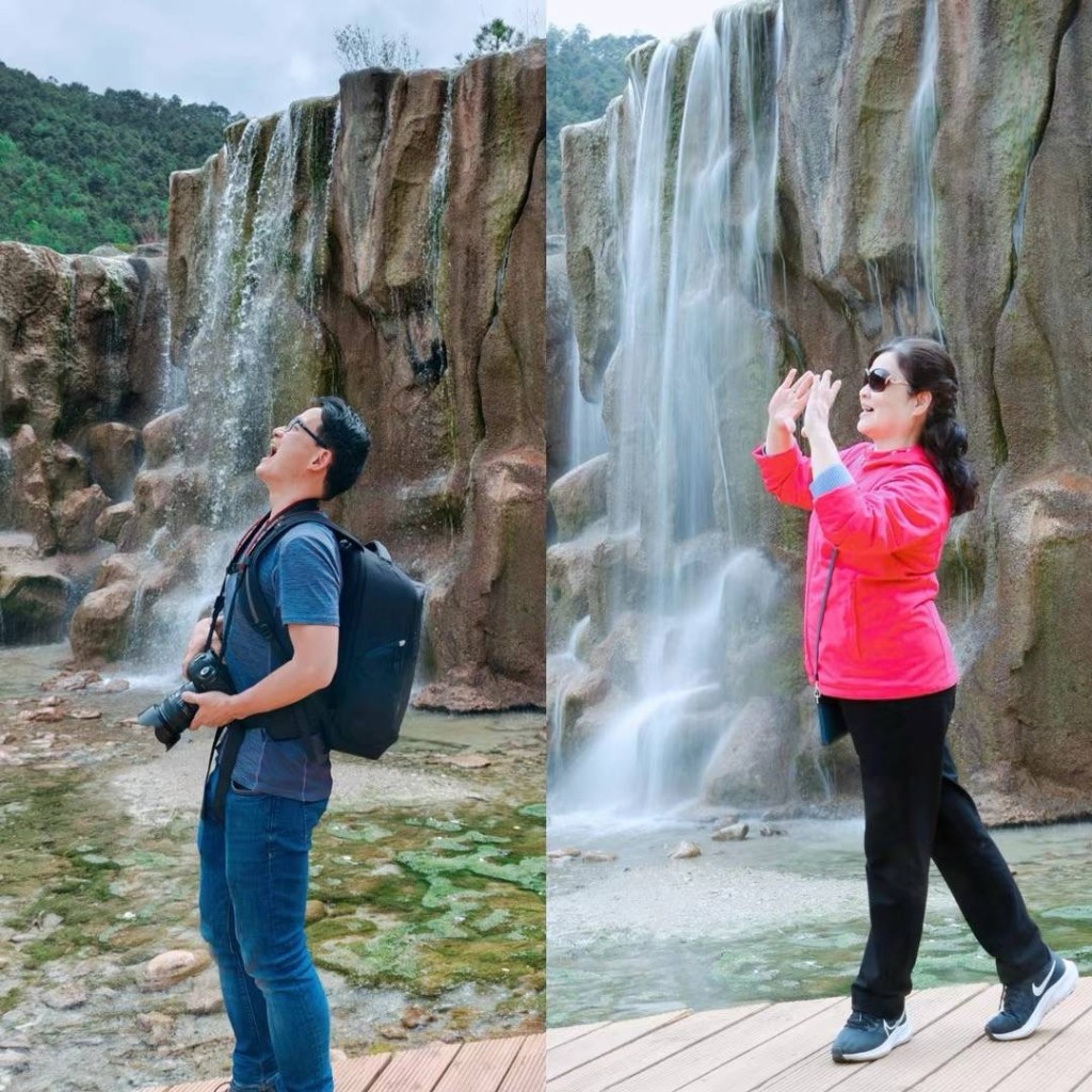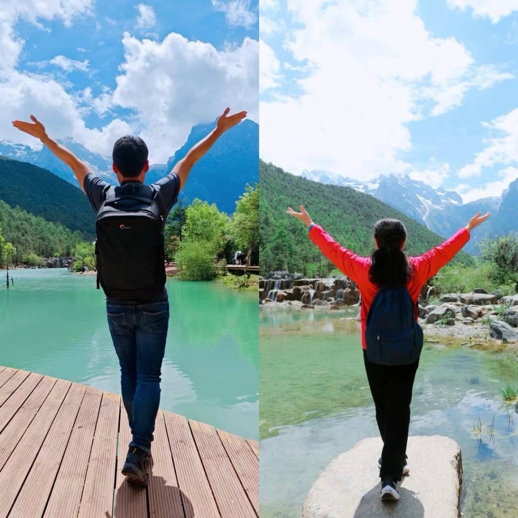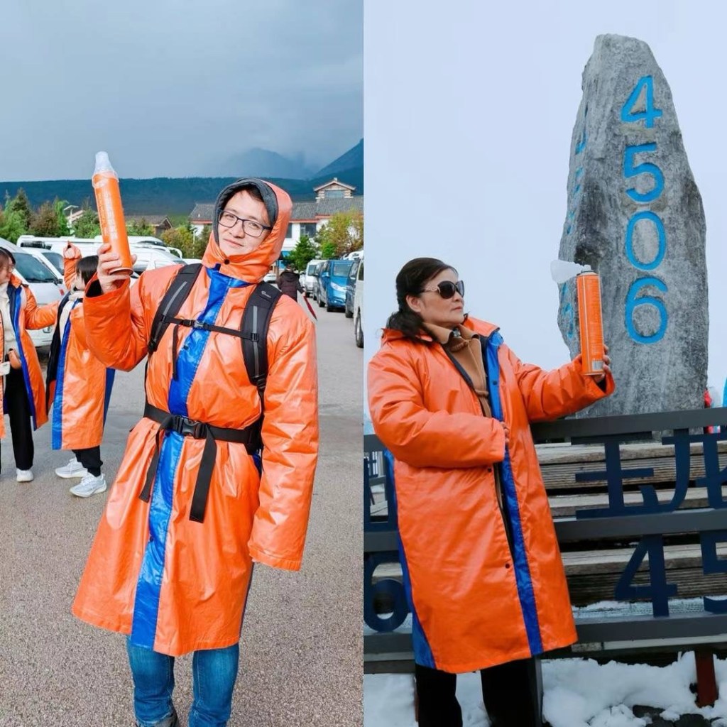 今天做了件极为冒险的事情。在玉龙雪山上把携带的氧气瓶全部留给在山腰上等我的老娘,我大概是整座海拔4680米的雪山顶峰上唯一一个完全没有氧气瓶的登山者。我相信十几年不间断健身所打造的强大心肺功能便是我最好的氧气瓶,所以才胆敢冒险一试,绝对不建议大家模仿。同团的几位女孩下山后都吐得一塌糊涂。这两天终于应了老娘的要求,摆出各种“老年乐”的姿势,与老娘同款。BTW,我有这么不像是“女儿明年要上大学”的爸爸吗?最费劲就是跟团友们解释这件事情。