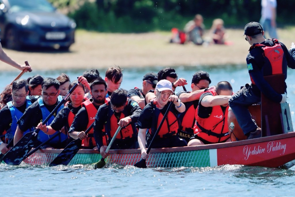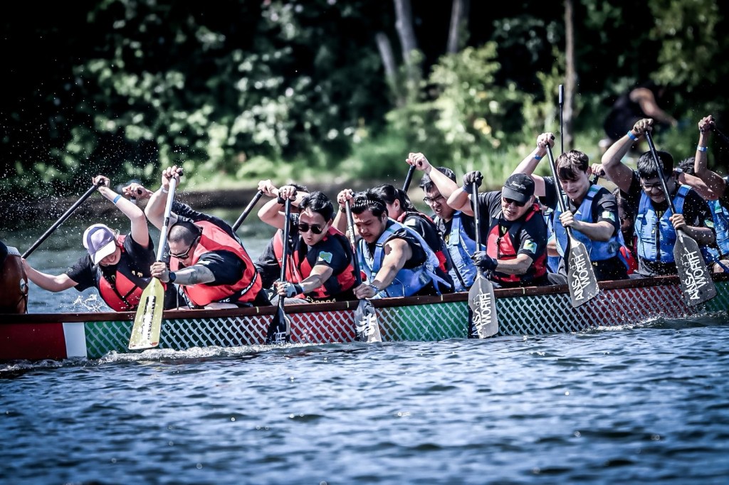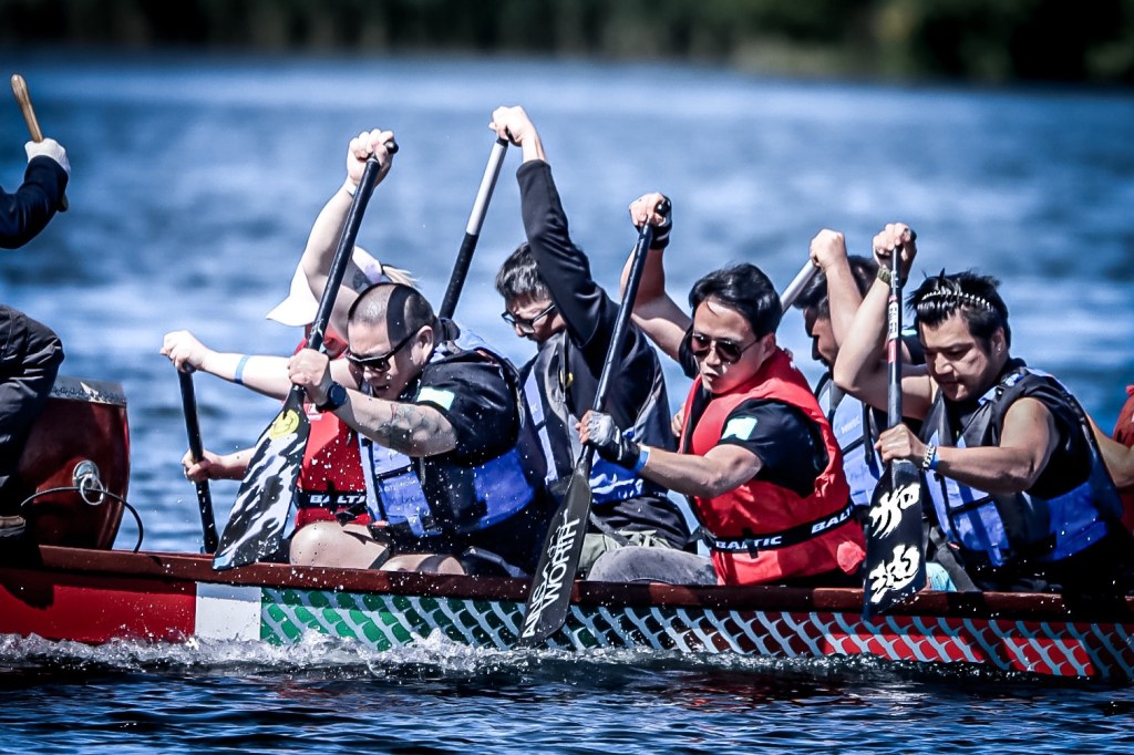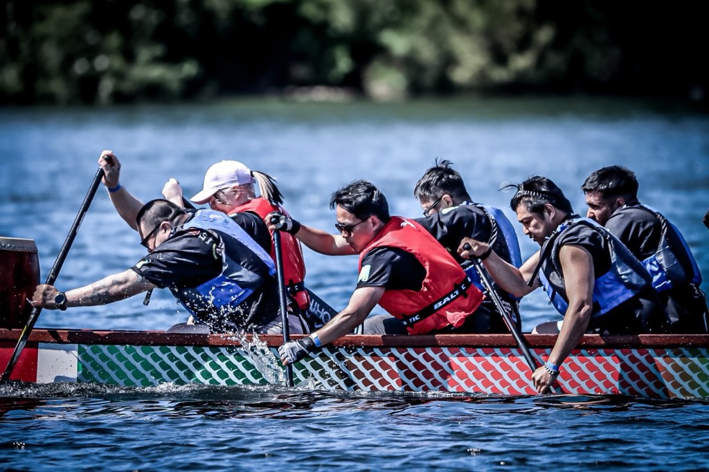 虽然只是儿童医院组织的慈善筹款活动,Sarah Ng对今年的龙舟赛异常重视。事后我从与她的交谈中得知她此前非常担心我们华人队会在12支队伍里垫底,毕竟她拼凑出的这支龙舟队里14名桨手居然有一半以上都是50岁以上的老华侨和没接受过手臂力量训练的女士。常年健身的我理所当然地担当最主要的前四桨。好在全队通力合作,我们居然杀进了半决赛。虽然在半决赛里输给了全肌肉男组成的冠军队,但我们也打破自己的最快速度记录,虽败犹荣。好希望明年我们华人社区也能出一支全肌肉男的赛队。
