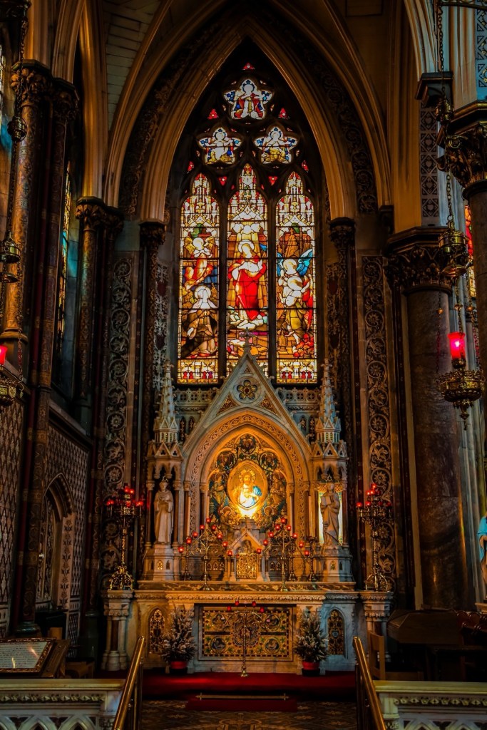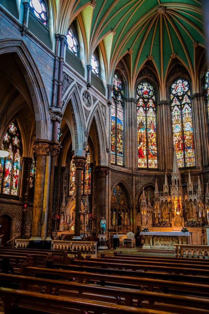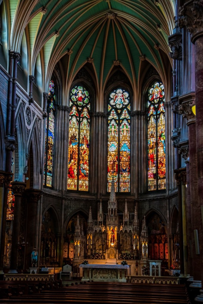爱尔兰是目前欧洲为数不多的虔诚基督教国家,天主教信徒占总人口的90%以上。都柏林市区教堂的密度非常大,经常是隔着一条街就有一间规模不小的教堂。约翰巷教堂John’s Lane Church是众教堂中最如梦似幻的。教堂内有大量色彩斑斓的花窗,阳光透过这些玻璃洒入堂内,留下光怪陆离的艳影。