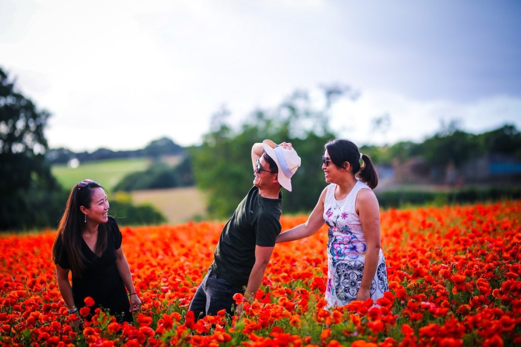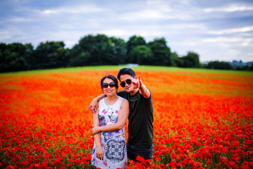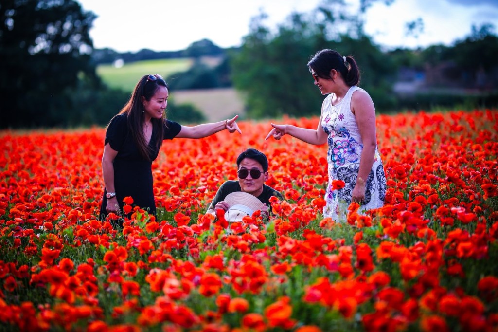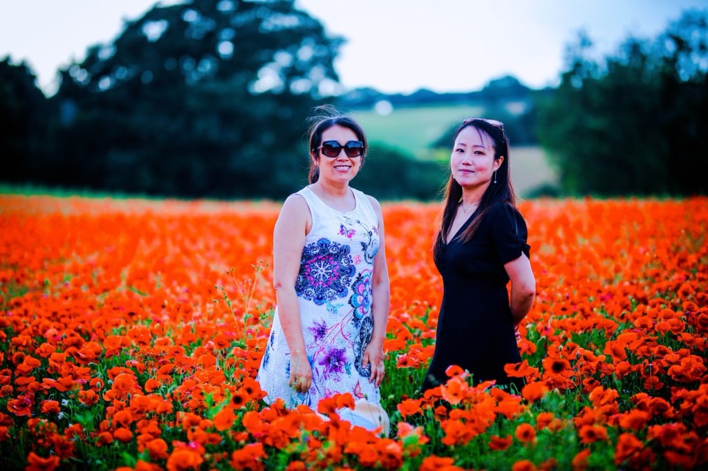去年的油菜花地,今年大概是休耕,开满了野生的罂粟花。漫山遍野的虞美人,宛如艳红的湖泊,在微风中泛起涟漪,在夕阳下熠熠生辉。人物摄影的乐趣在于互动,当摄影师亲自下场当模特时,气氛就非常活跃了。