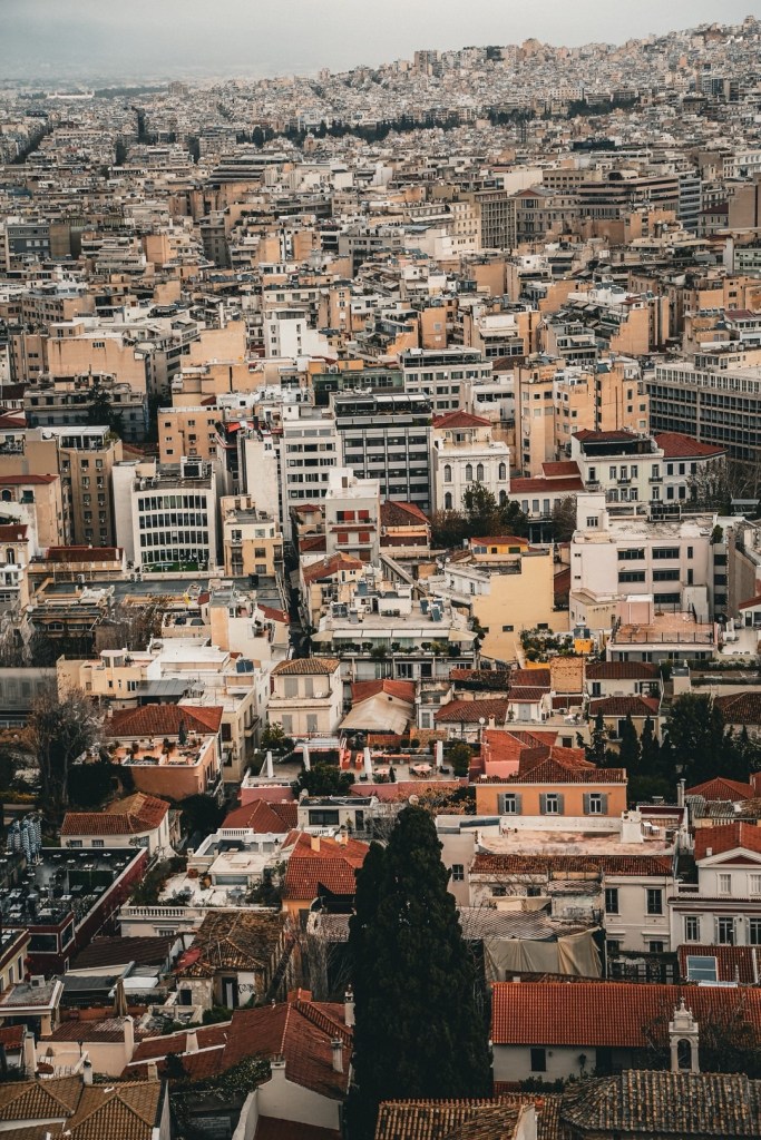 雅典城区的房屋密度过大,加之游客众多,出租车胡乱停靠,导致交通非常拥塞。从卫城可以俯瞰雅典全貌,目力所及尽是鸽子笼般密集的住宅区,楼间距十分短窄,多数只能刚好挤进一台小车。市区的绿化居然以橙子树为主,这个季节里沉甸甸的果实挂满了枝头,刘太捡了一个,苦涩难以下咽,应了晏子那句“生于淮北则为枳”。