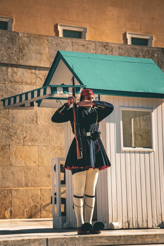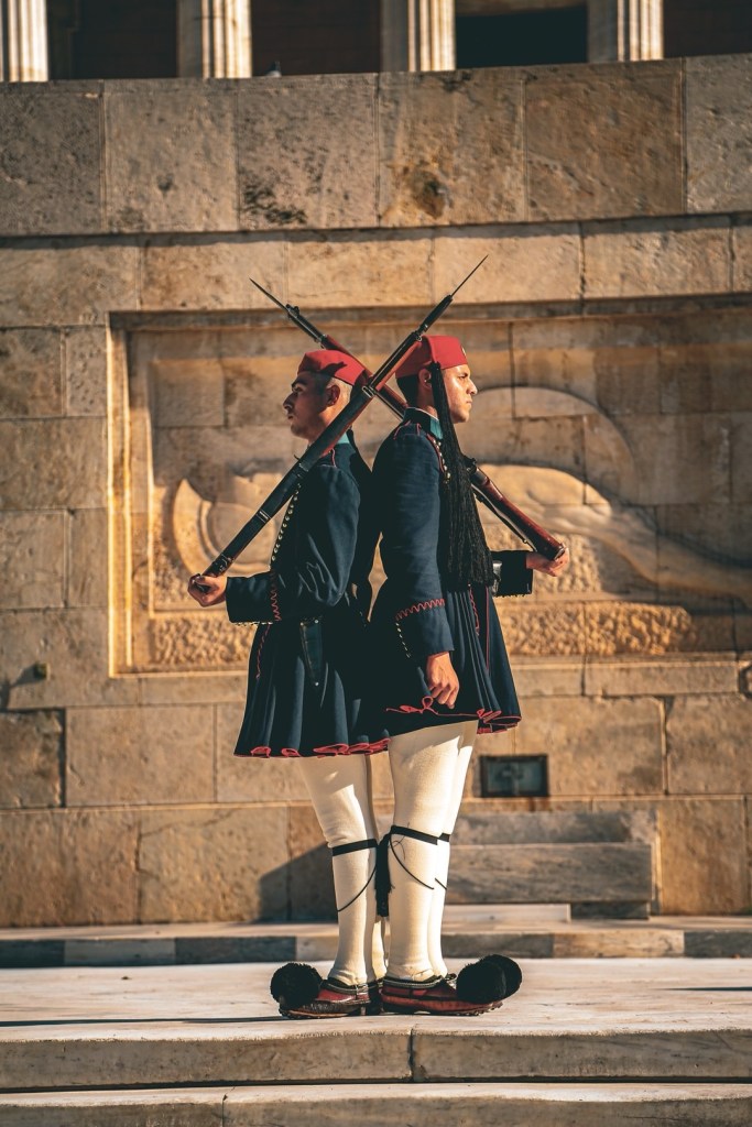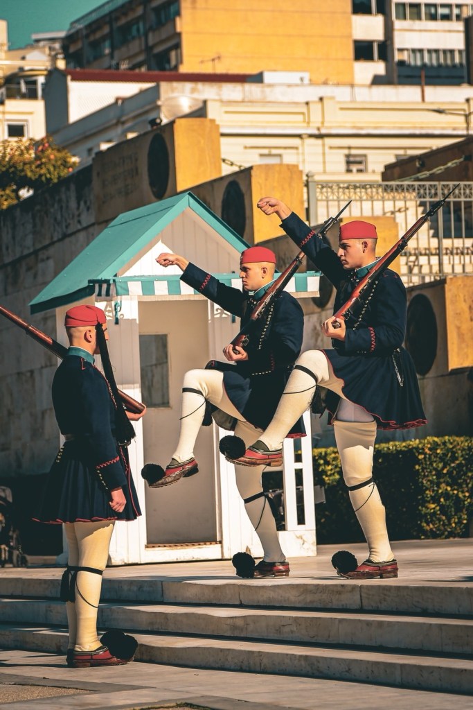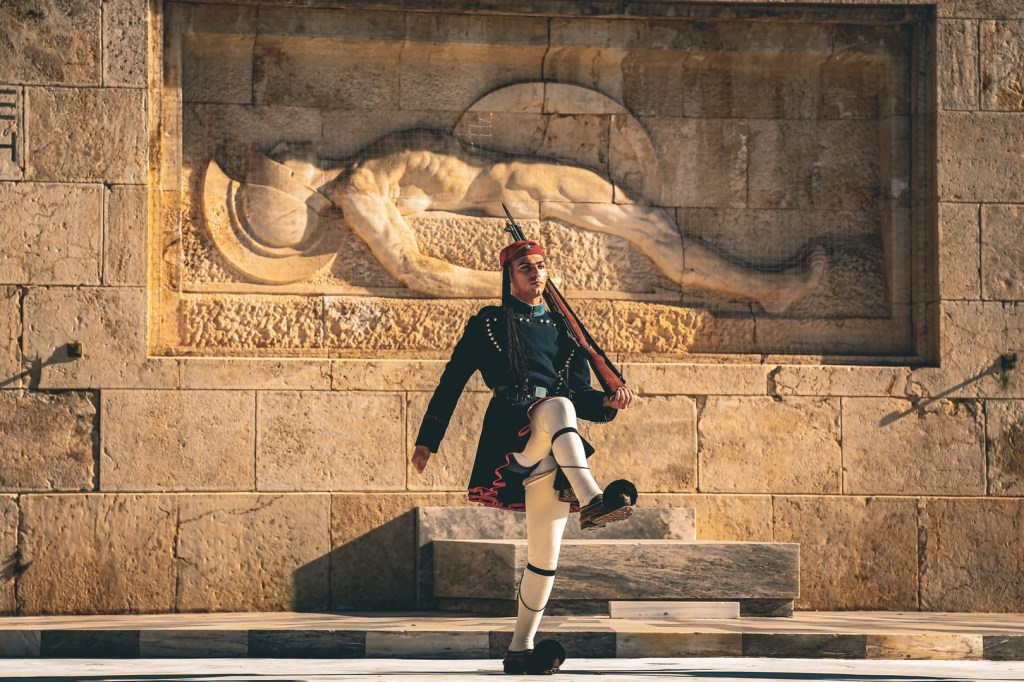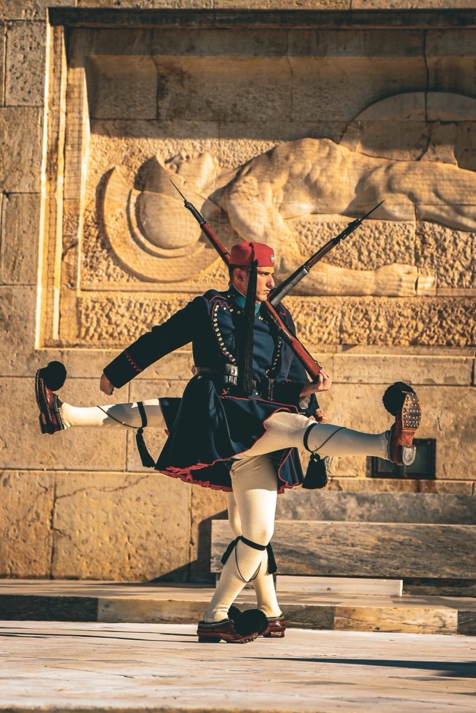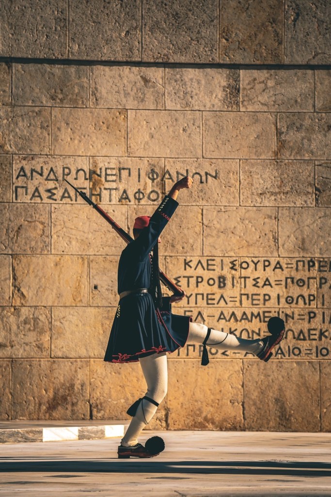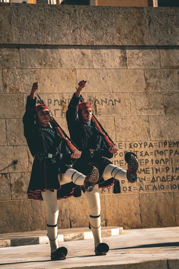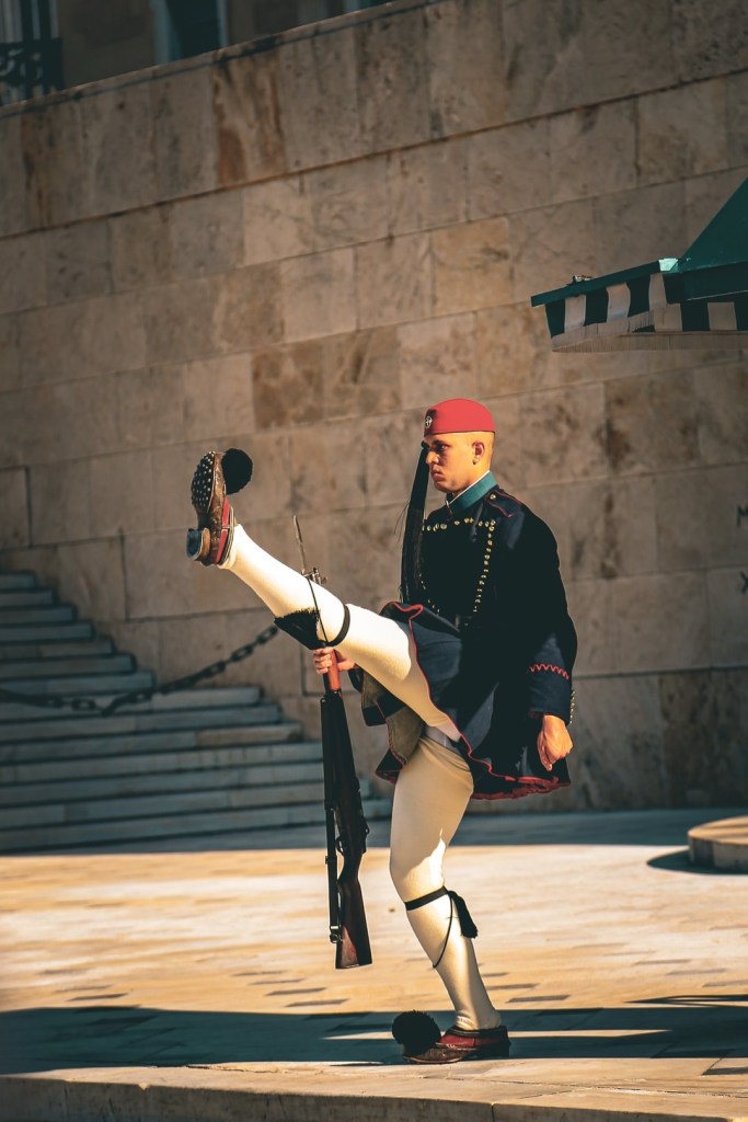 雅典议会大厦前的无名战士纪念广场,每隔一小时就会换一次岗。卫兵迈着一种缓慢又略显夸张的步伐,成为一道独特的风景线。以此纪念那些在被奥斯曼帝国统治的四百年间为希腊民族独立而阵亡的将士。希腊被土耳其人统治的时间段与我们汉人被女真人统治的时间段高度重合,和我们一样,民族融合与同化、抗争与妥协、共治与分裂、百折而不屈贯穿着整个被异族统治的时期。